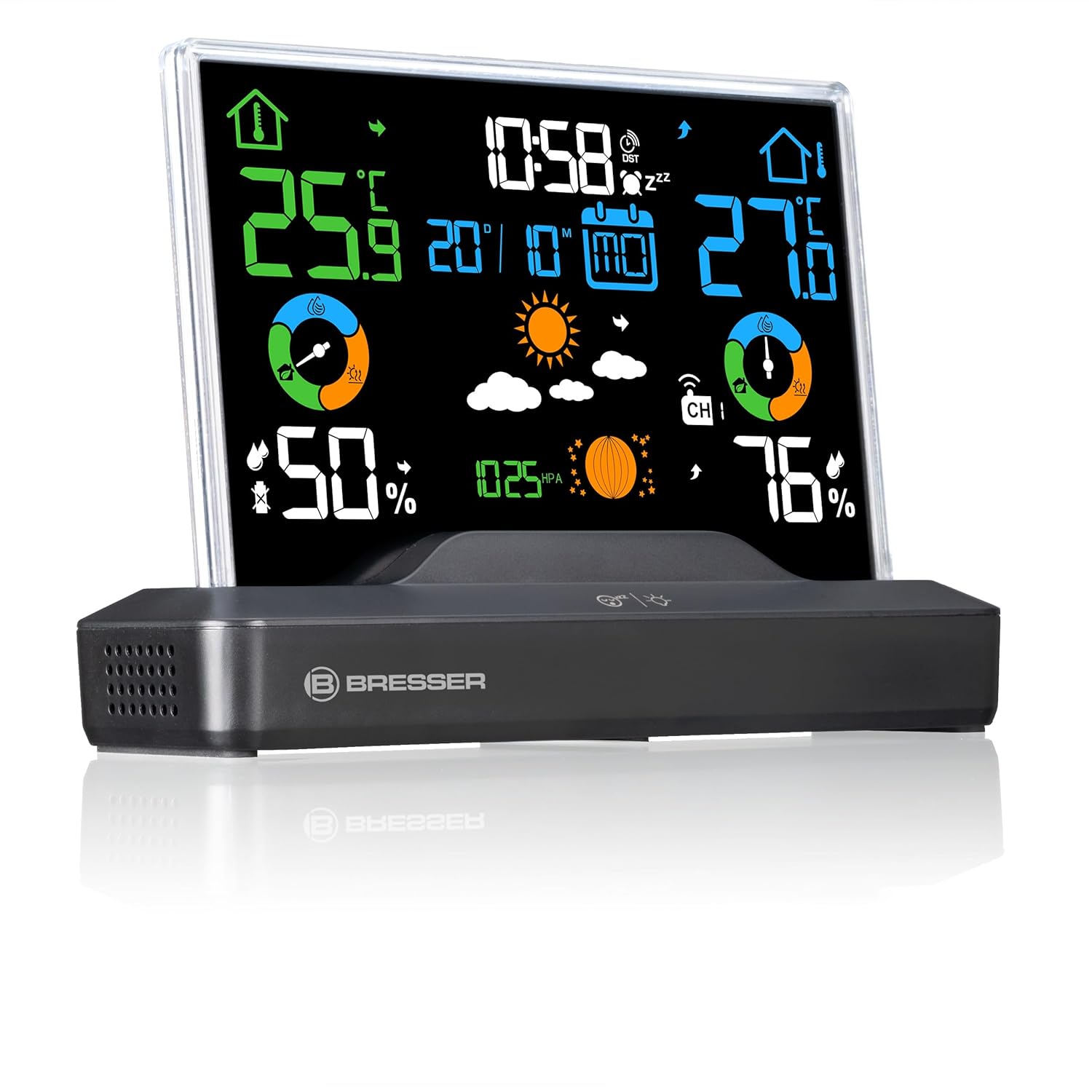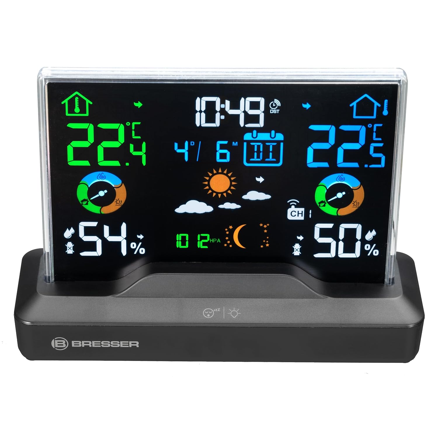Bresser Funk-Farbwetterstation rahmenloses Display, Temperatur, Luftfeuchtigkeit, Wettervorhersage