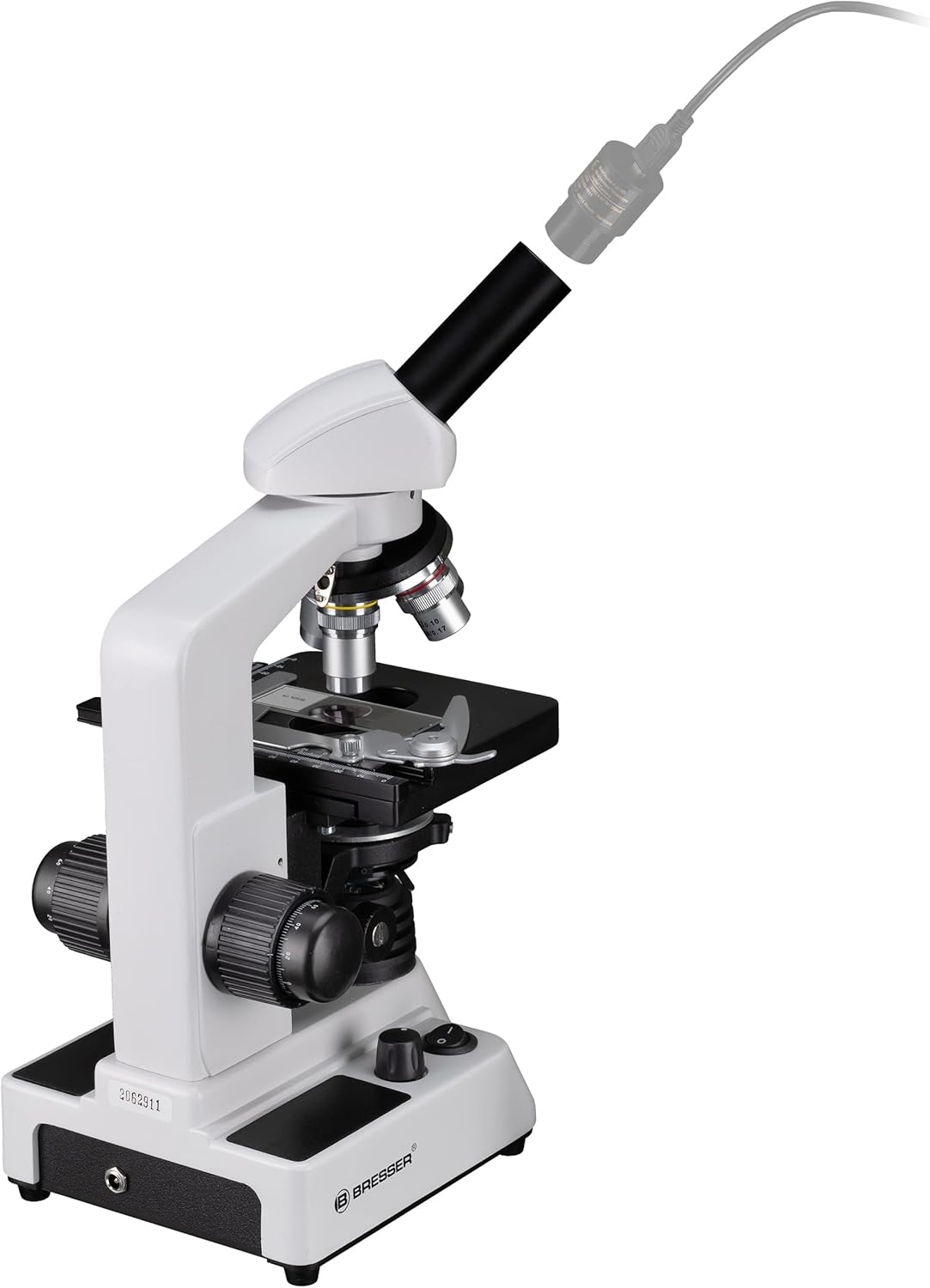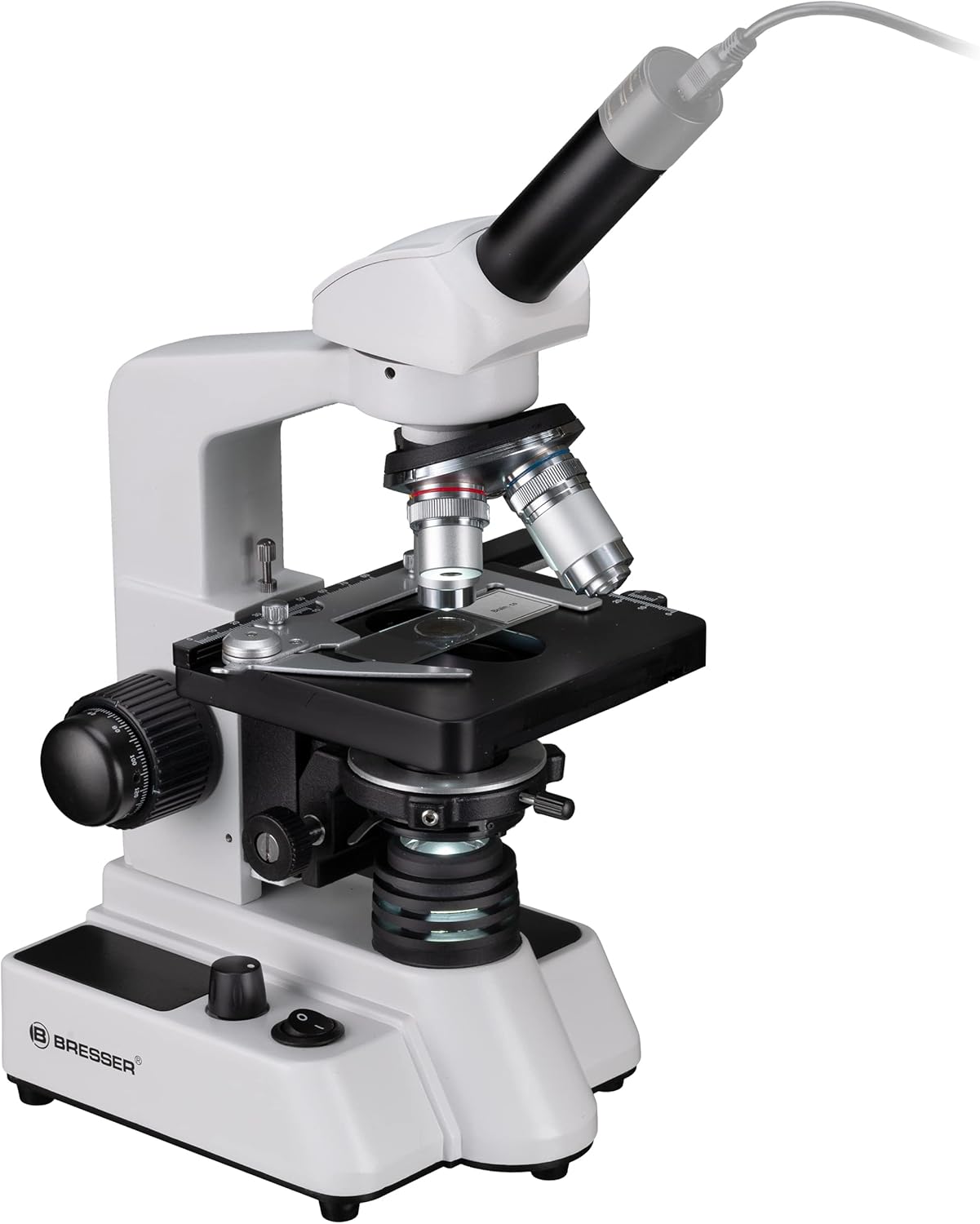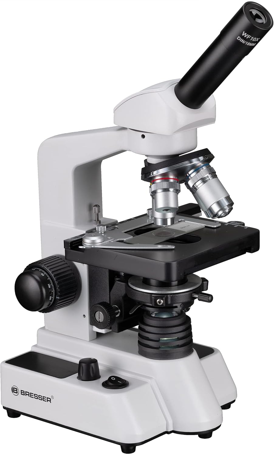 - Lieferumfang: Mikroskop, Din-Okular (WF 10x), DIN-Objektive (4x, 10x, 40x, 100x-Oil), Kreuztisch mit Nonius-Einteilung, Abbe-Kondensor, Netzadapter