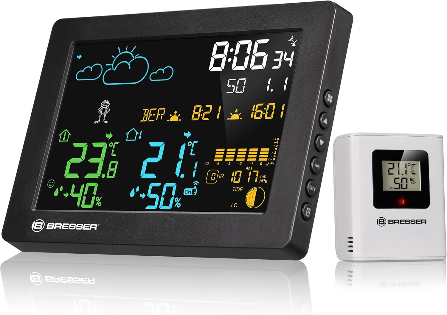 - Präzise Messung: Der inkludierte Aussensensor liefert genaue Daten zu Aussentemperatur und -luftfeuchtigkeit direkt auf das farbige Display.
