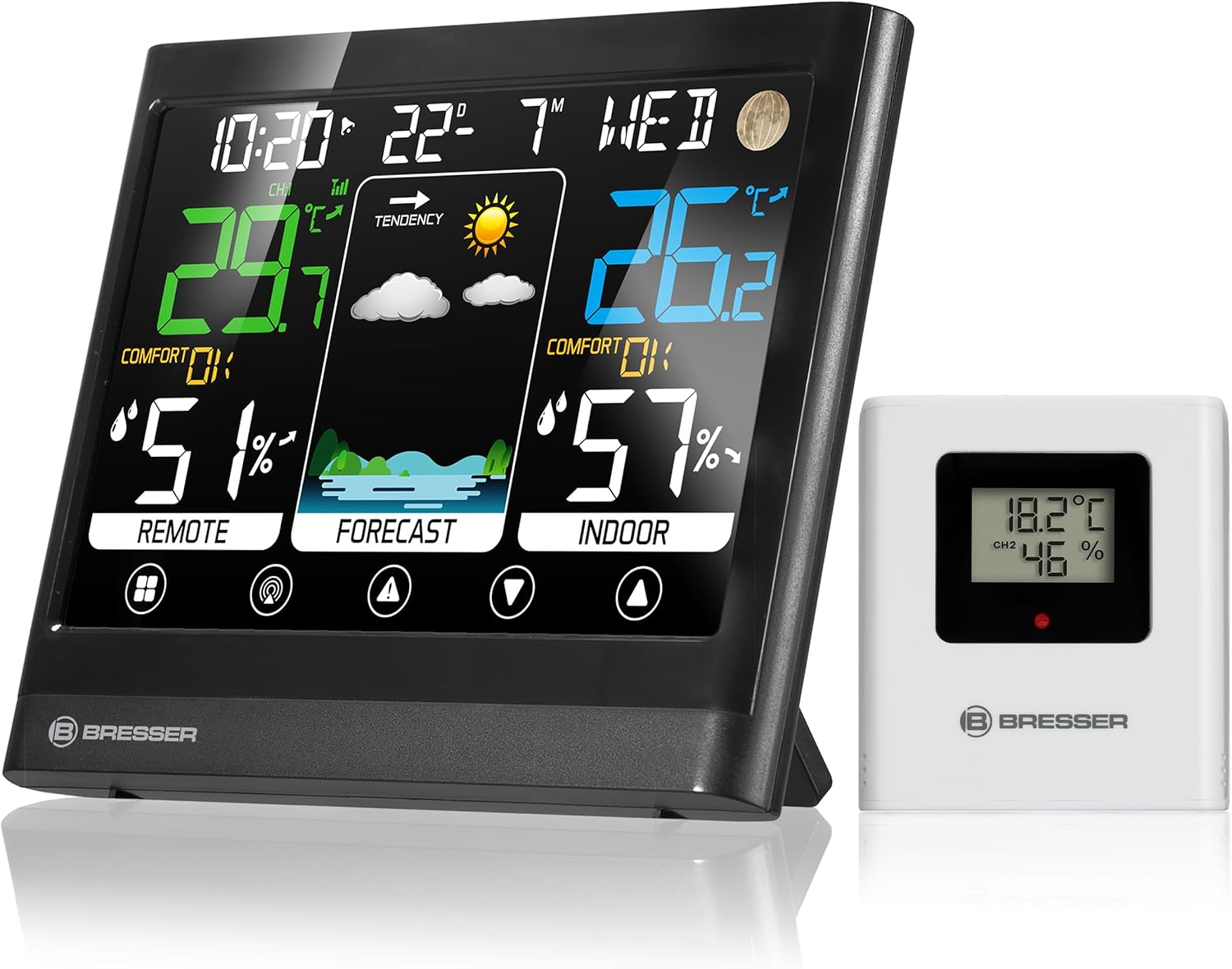 - VIELSEITIGE WETTERSTATION MIT AUSSENSENSOR: Die Bresser MeteoTemp BF Wetterstation bietet präzise Informationen über das lokale Wetter, das Raumklima und die Temperatur sowie Luftfeuchtigkeit im Aussenbereich