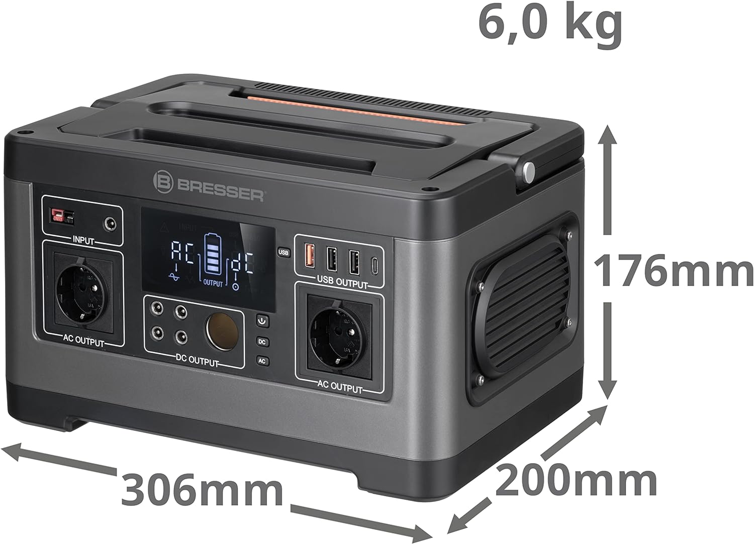 • Masse: 306 x 200 x 176 mm, Gewicht: 6 kg