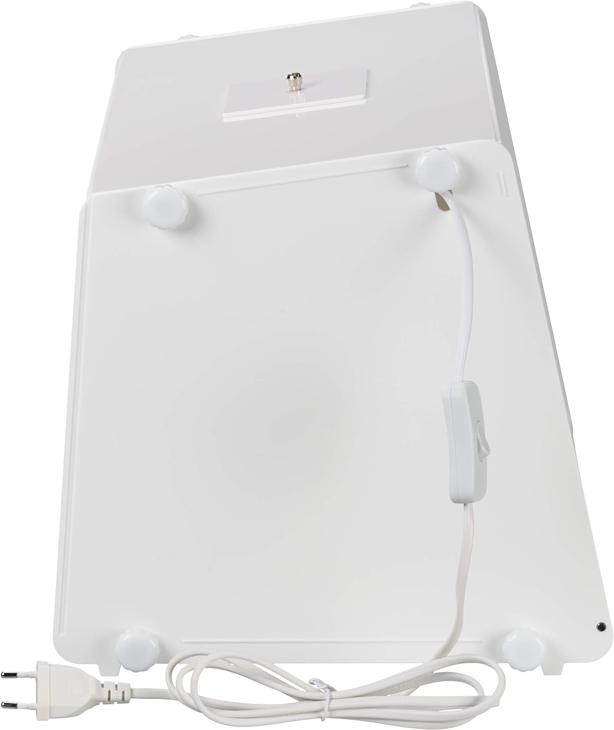 • Die praktische Fotobox mit milchweissen Wänden eignet sich perfekt für die Produktfotografie. Die integrierten Tageslichtlampen gewährleisten eine gleichmässige Produktausleuchtung.