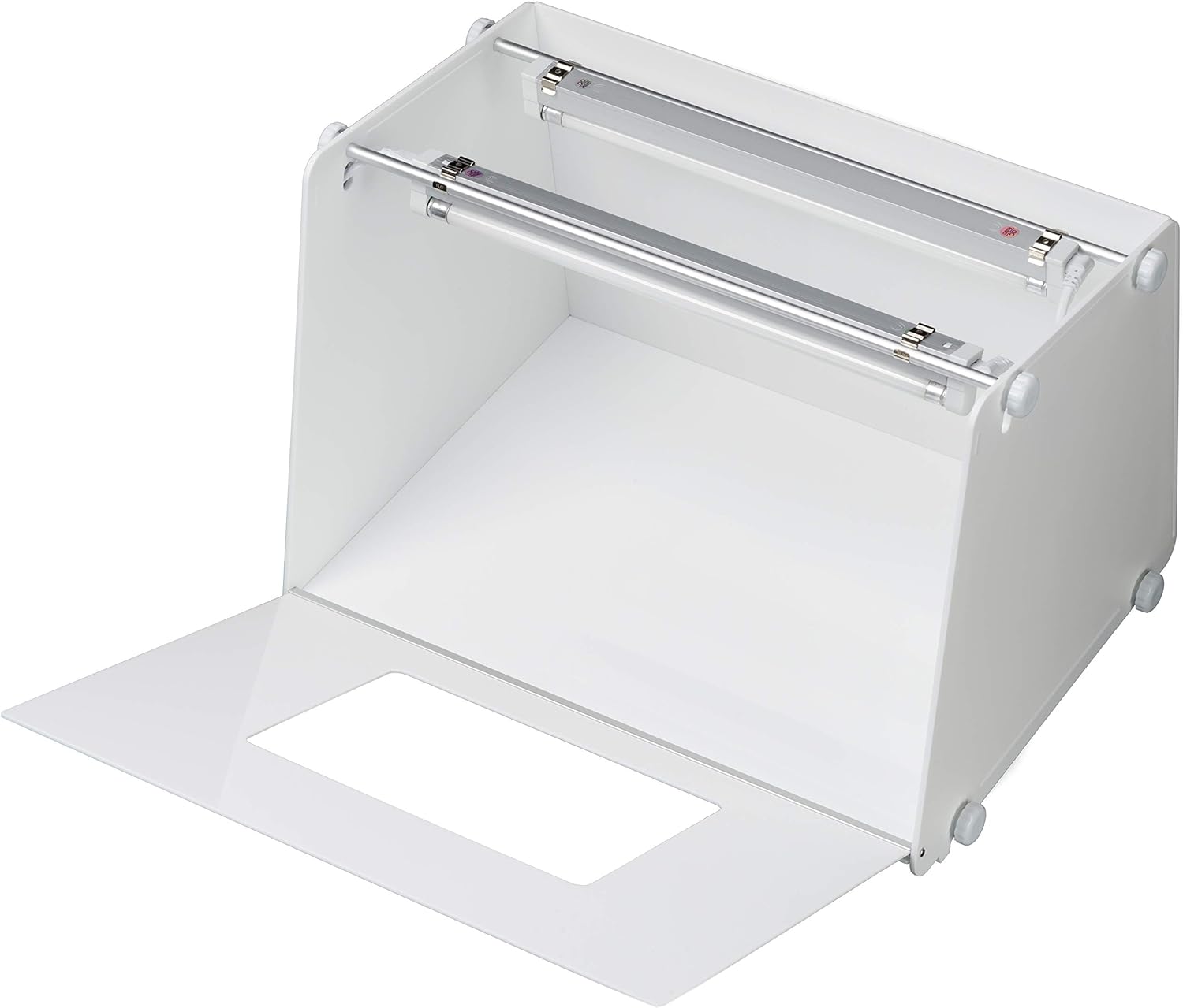 • Die Beleuchtung der Fotobox übernehmen zwei Tageslichtlampen mit einer Farbtemperatur von 5600 Kelvin. Dadurch entstehen die Fotos mit weissem, weichem Licht ohne Schattenbildung. Die Lebensdauer der Lampen beträgt ca. 8000 Stunden.