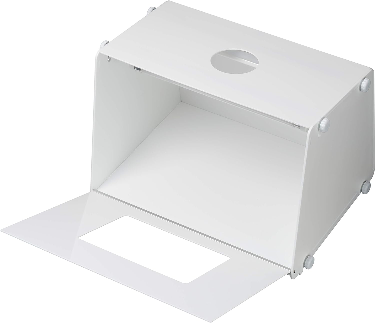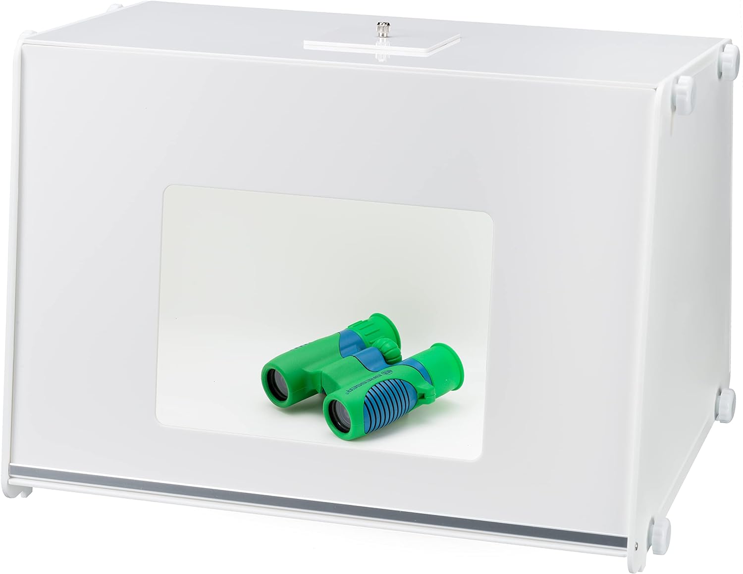 • Die diffusen, milchweissen Wände reduzieren die Reflexion und ermöglichen ein schattenfreies fotografieren. Durch die Öffnungen oben und an der Seite kann das Objekt einfach ausgerichtet werden.