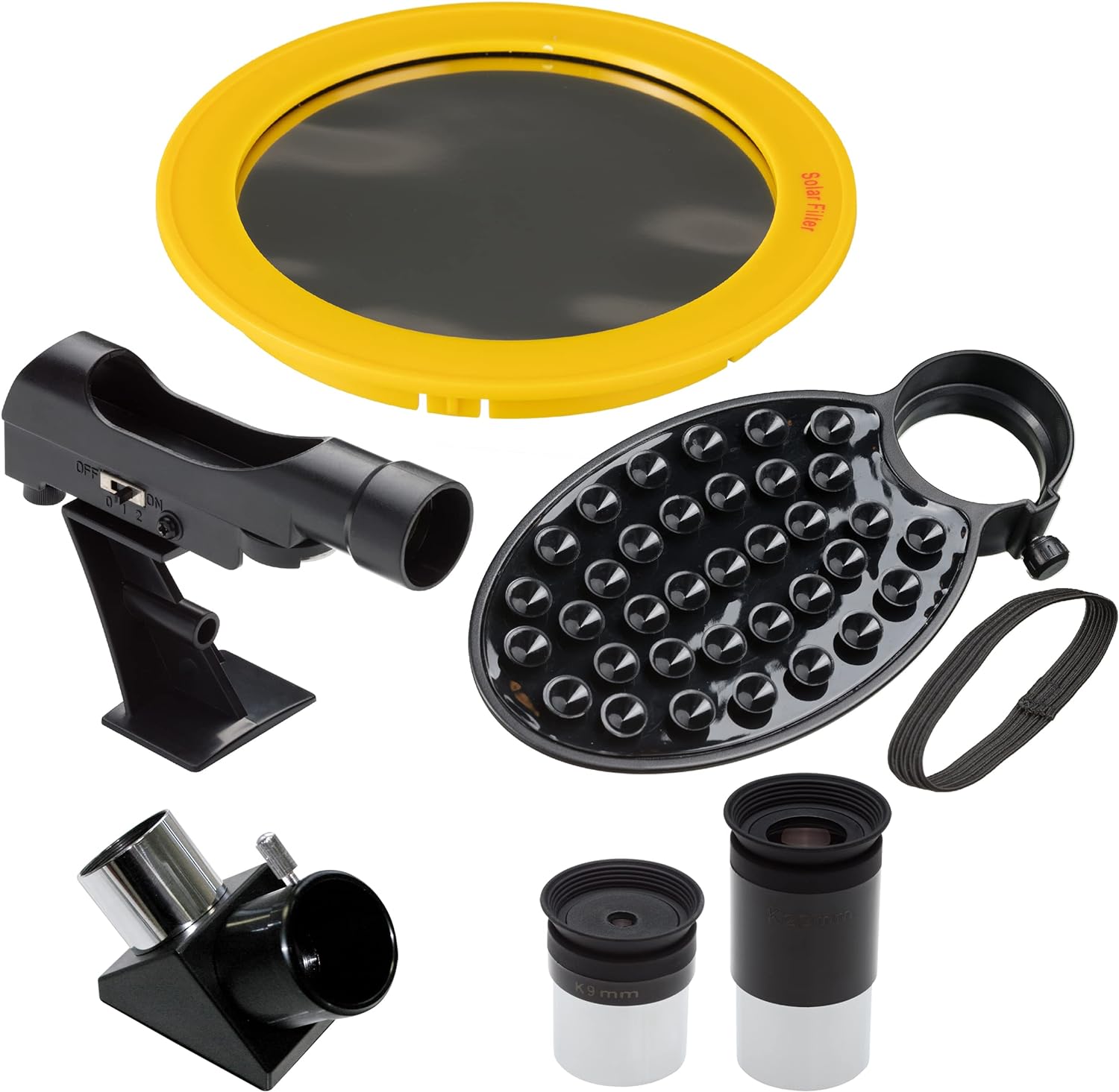 - Lieferumfang: Refraktor / Linsenfernrohr; Azimutale Montierung; Aluminium-Stativ mit Zubehör-Ablage; Okulare: 9mm, 20 mm; Zenit-Spiegel 1,25" (31,7mm); LED Leuchtpunktsucher; Smartphone Kamera Adapter, Software & drehbare Sternkarte