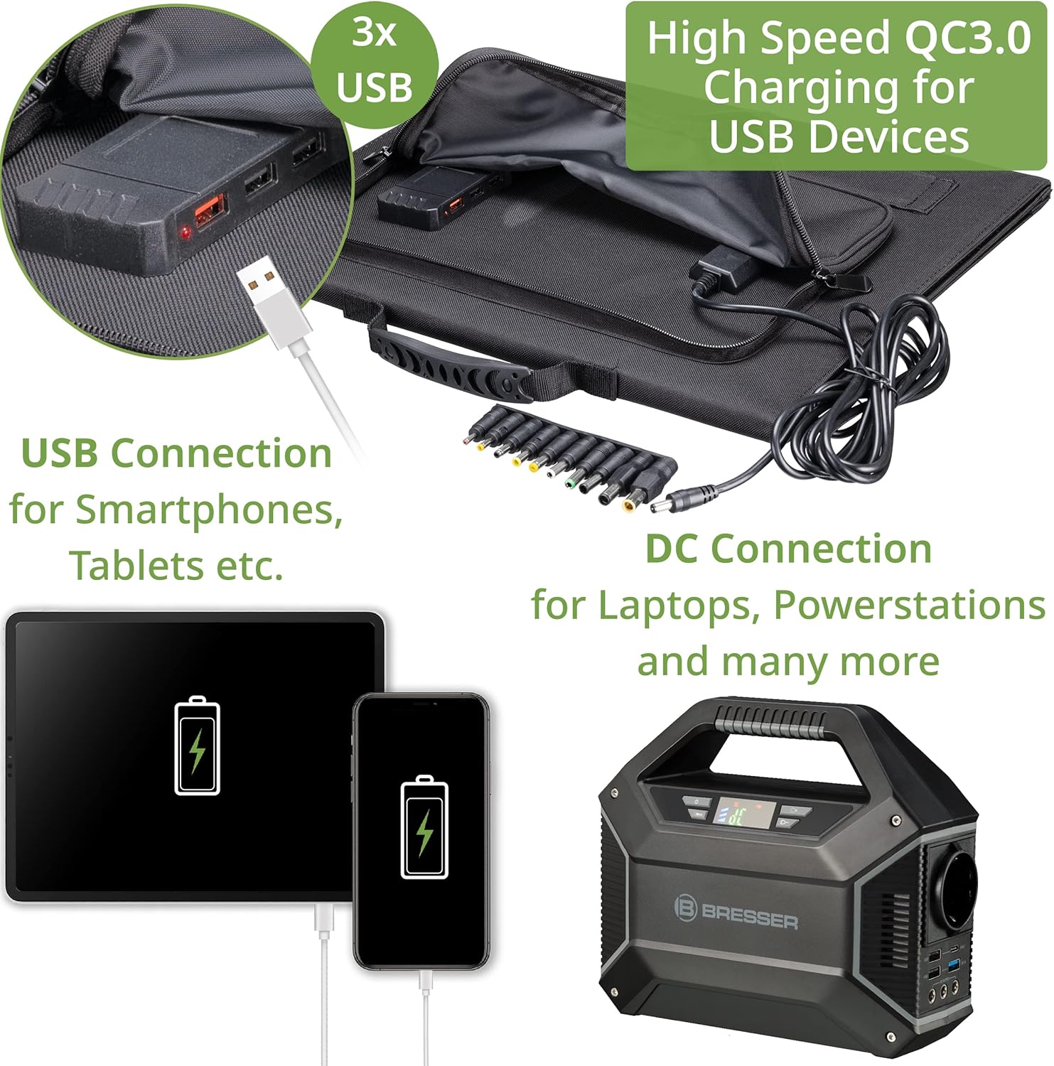 Bresser Solar Ladegerät 40W mit 1x DC- und 3x USB-A-Anschlüssen inkl. USB-A-Buchse mit QC3.0 zur Sch