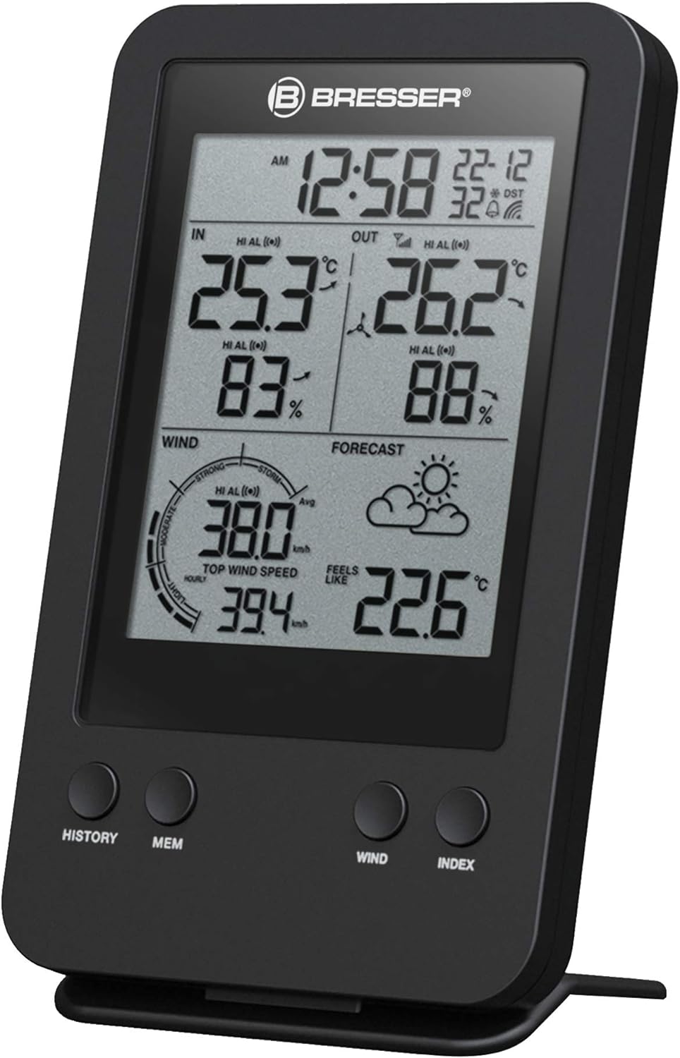 Bresser Wetterstation Funk mit Aussensensor 3-in-1 Profi Windmesser mit Anzeige für Windgeschwindigk