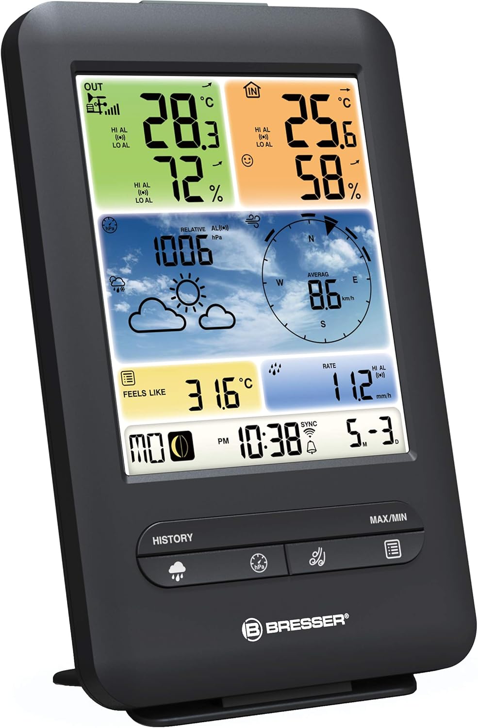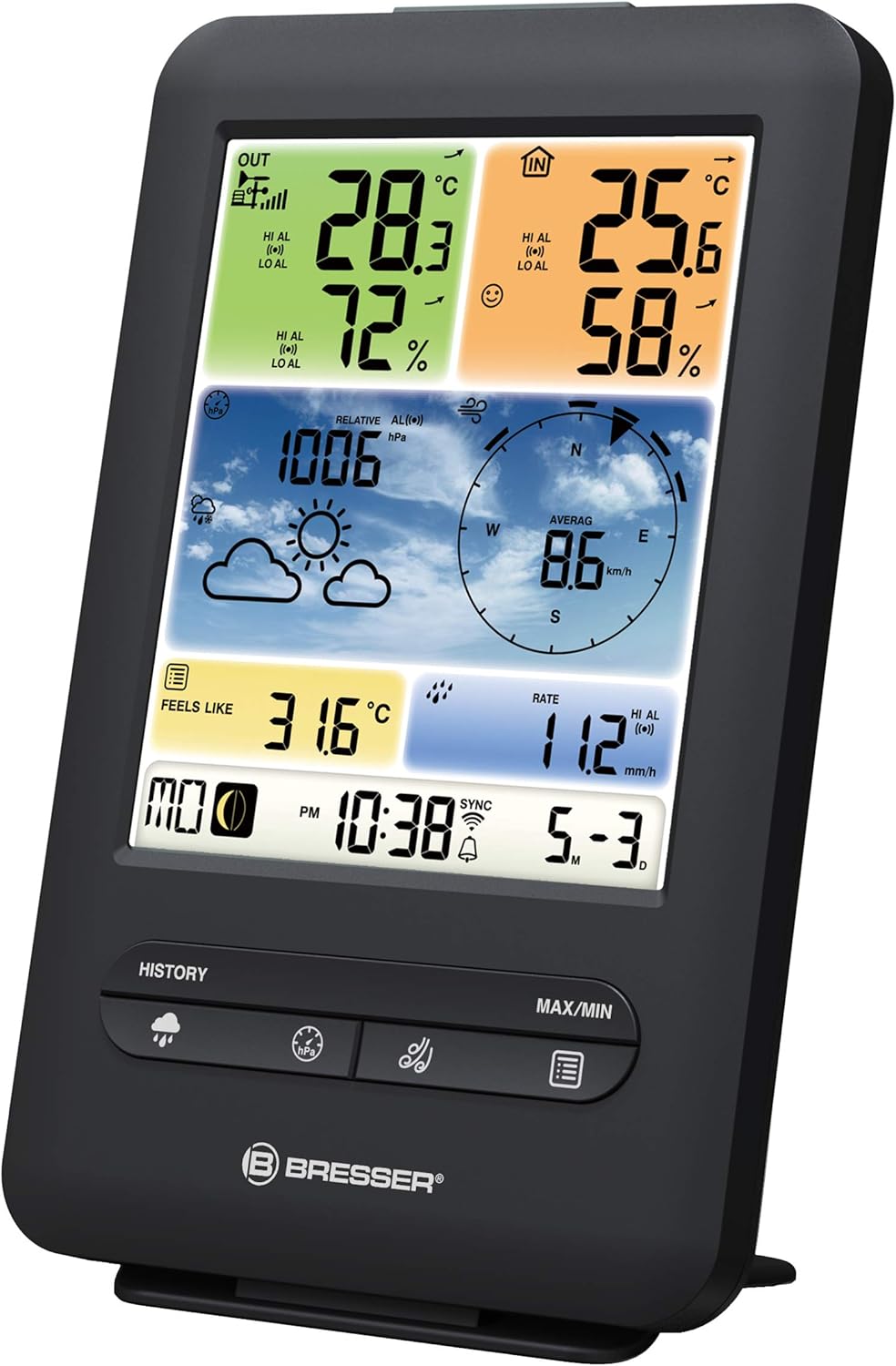 Bresser Wetterstation Funk mit Aussensensor WLAN Farb-Wetter Center 5-in-1 mit Aussensensor für Temp