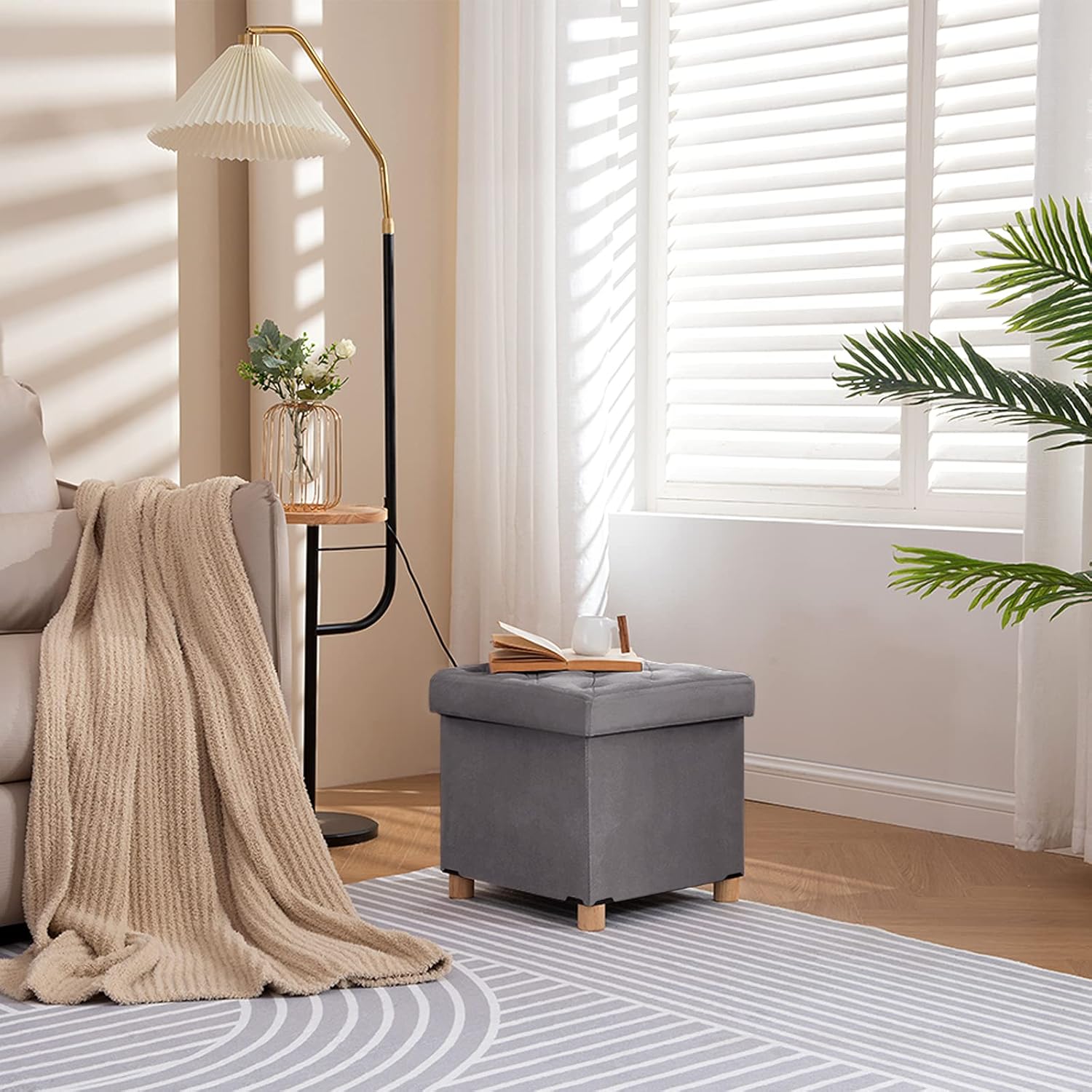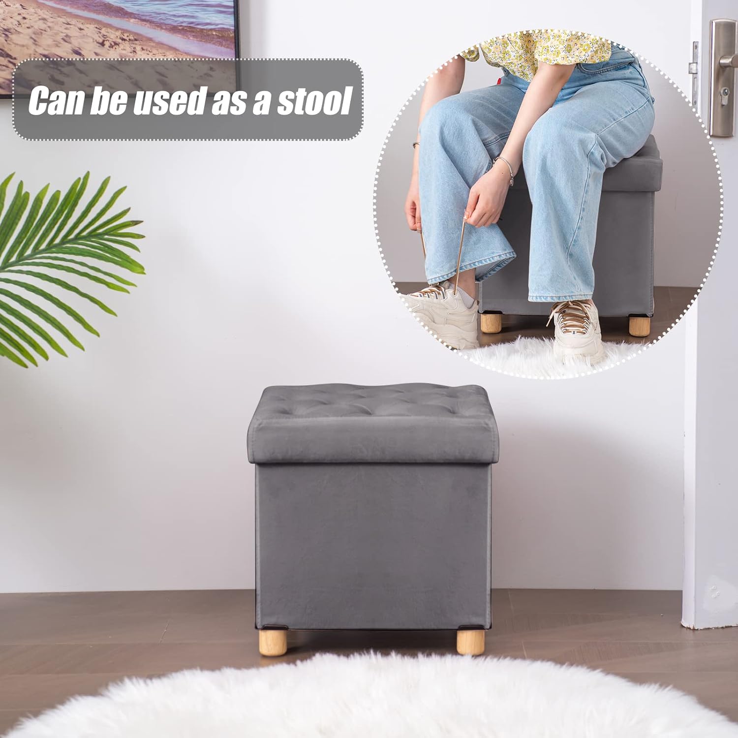 - 【Sitzwürfel mit Holzfüssen】Unter hoher Belastung leicht zu bewegen; schützen den Hockerboden vor Schmutz.