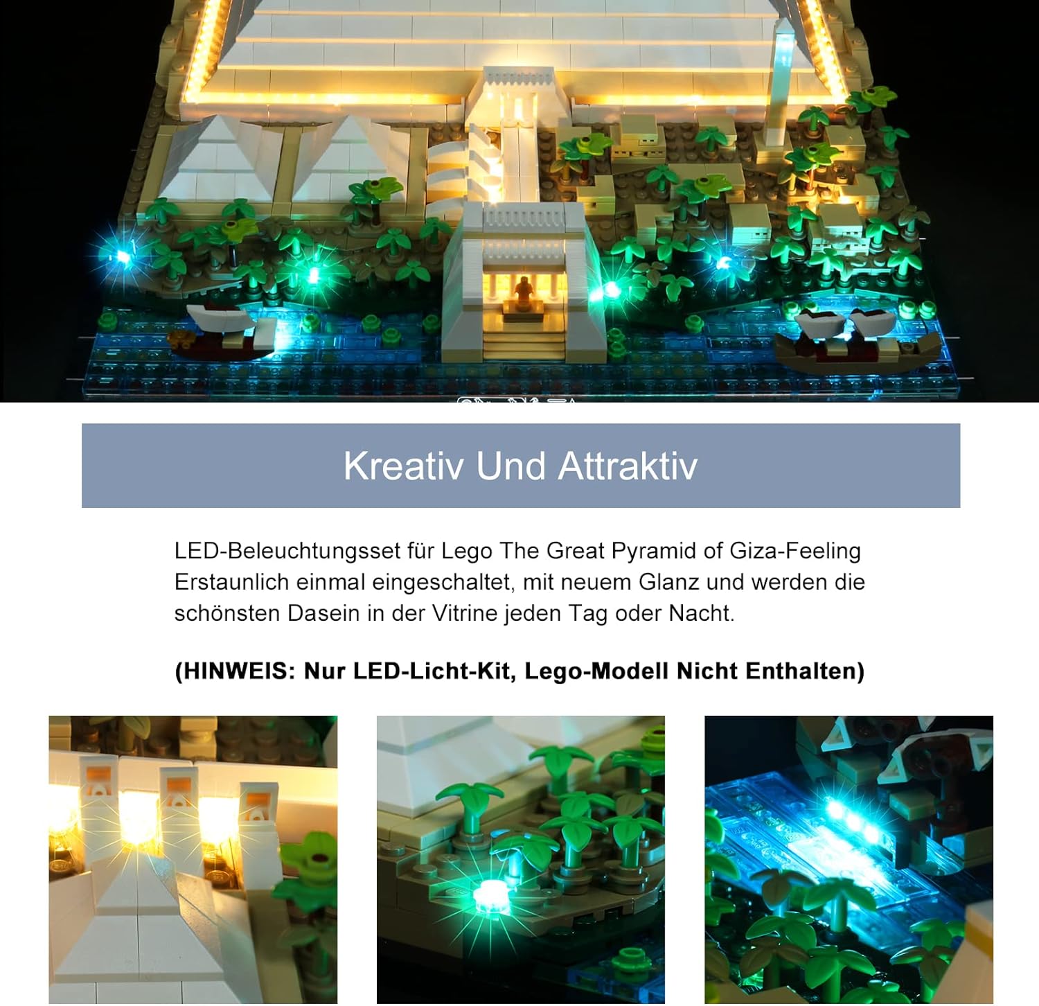 - 【Einfach zu installieren】: Speziell für LEGO Cheops Pyramide 21058 Brick Model entwickelt. Das elektronische Handbuch ist mit Schritt-für-Schritt-Anleitungen beigefügt, um die praktischen Fähigkeiten zu verbessern. Dieses Beleuchtungsset passt