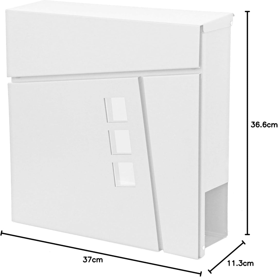 • Inkl. 2 Schlüsseln und Montagematerial | Mit praktischem Zeitungsfach | Front mit 3 Sichtfenstern | Material: galvanisierter Stahl, pulverbeschichtet | Zylinderschloss | Grosser Einwurf | Leichte Montage