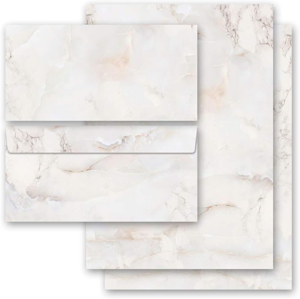 - Briefpapier & Briefumschläge im Set, Marmor & Struktur, MARMOR NATUR | Selbstklebend mit Abziehstreifen | Online bestellen! | Paper-Media | 100 Blatt Briefpapier und 100 Briefumschläge (ohne Fenster)