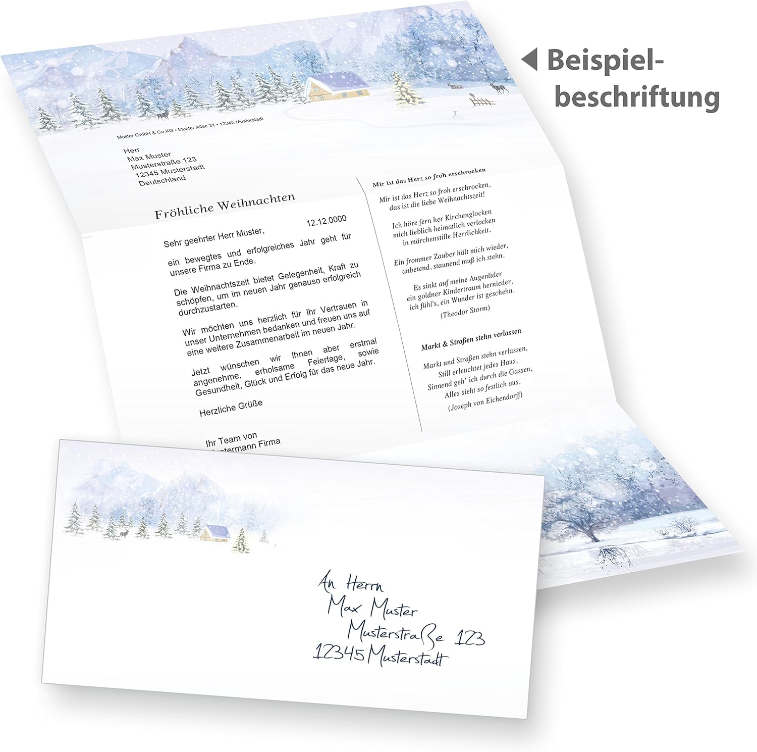 - 25 Briefpapiere und 25 Briefumschläge (ohne Fenster) Motiv Weisse Weihnacht