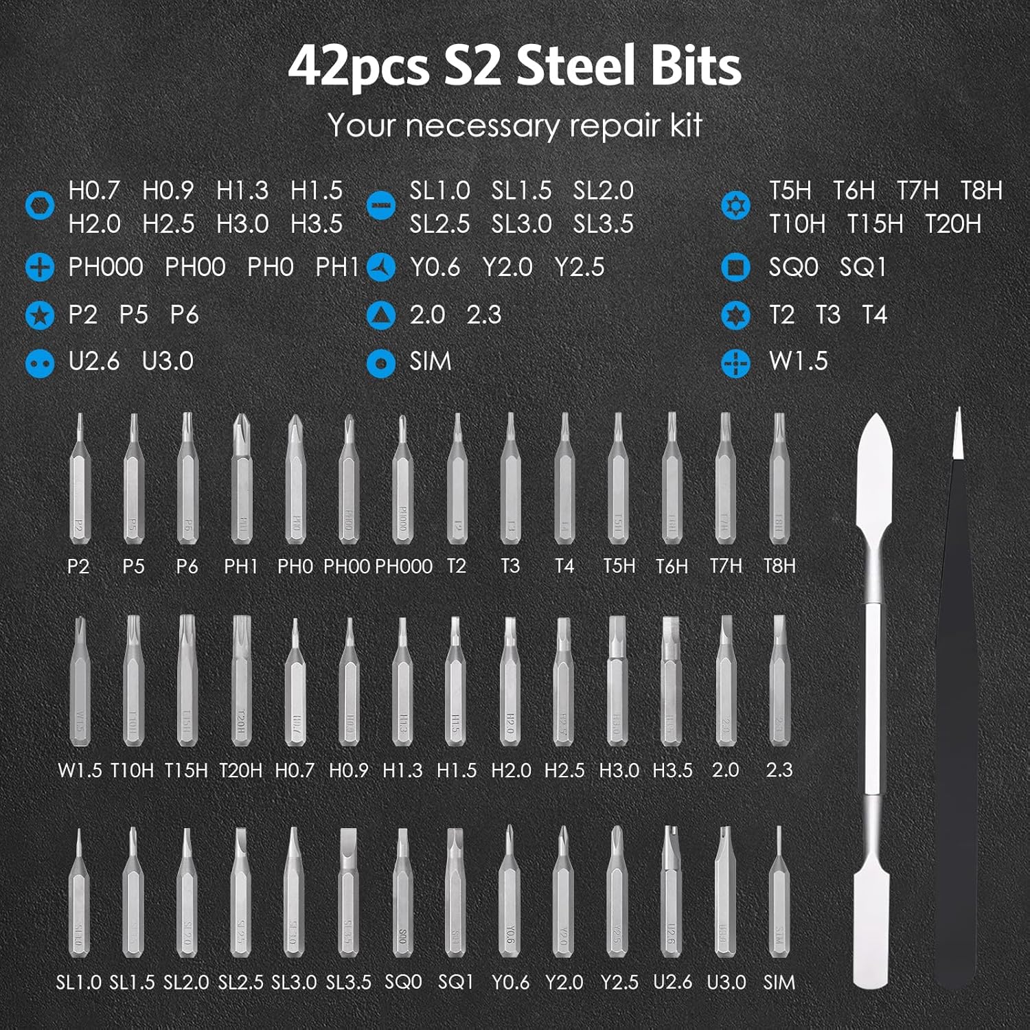- 【Eine Vielzahl von Spezialbits】Mit 42 verschiedenen Schraubendreherbits, die aus hochfestem S2-Stahl hergestellt sind, Bieten diese Mikro-Schraubendreher-Bits aussergewöhnliche Stärke und verlängerte Lebensdauer, perfekt für Ihre verschiedenen