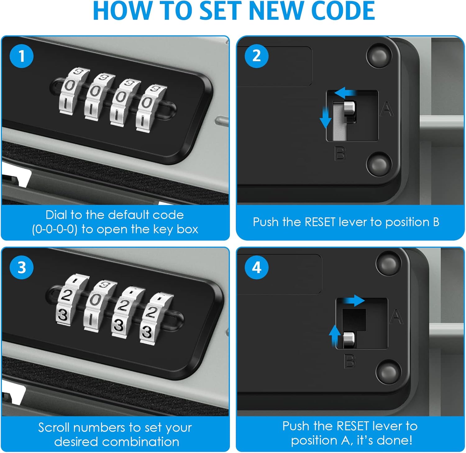 - 【4-Stelliger Kombinationsschloss】Der Rücksetzbare 4-stellige Schlüsselbox bietet bis zu 10000 Kombinationsmöglichkeiten. Das ist zehnmal sicherer als ein 3-stellige Schlüsselsafe, ist also schwer zu knacken. Es wird empfohlen, ein Foto