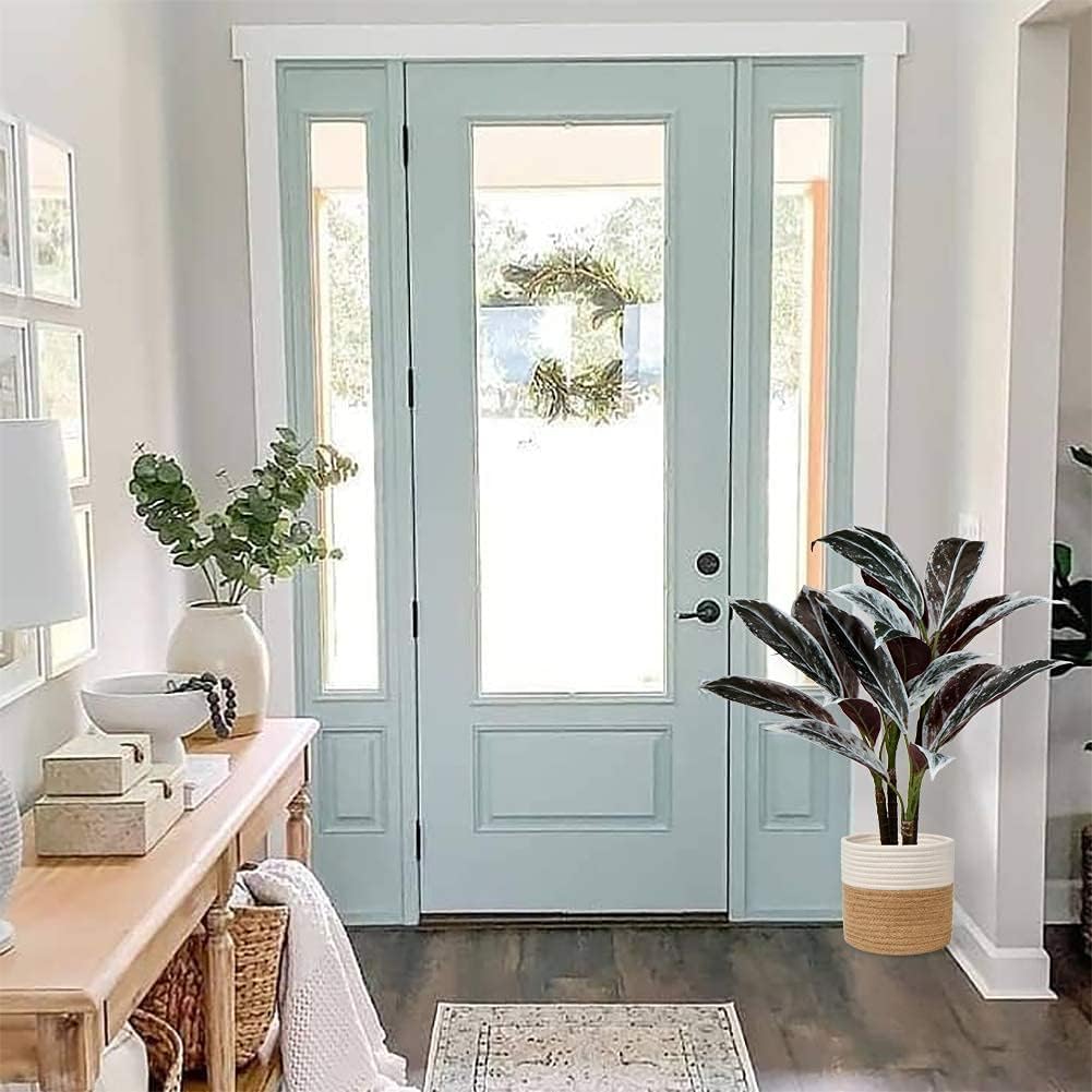 - Diese künstlichen Pflanzen Calatheas sorgen mit ihren breiten, ledrigen und glänzenden Blättern für ein tropisches und farbenfrohes Gefühl. Die Kunstpflanzen haben oben ein dunkles Grün mit gefiederten Nadelstreifen, die in Rose und Creme getönt