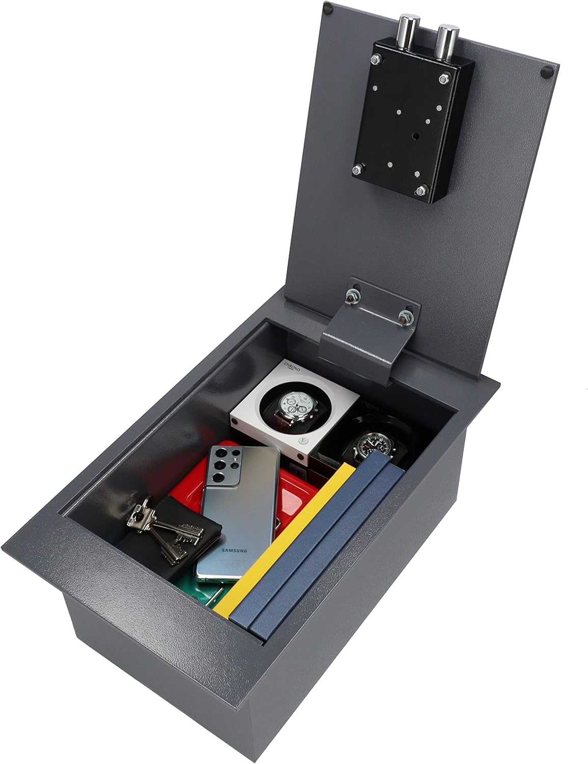 - DISKRETE, VERDECKTE DOKUMENTE IM A4-GRÖssE, PASSEND FÜR DEN BODENSAFE. Dokumente im A4-Format passend, am Boden montierbarer Safe, der unter Teppich oder Möbeln versteckt werden kann. Ihre Wertsachen sind besonders sicher, wenn sie ausser Sichtweite