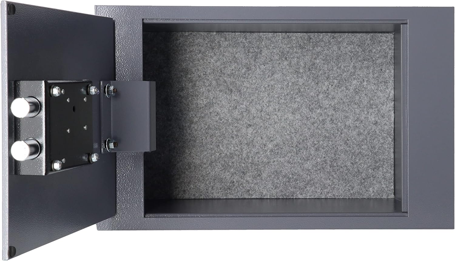 - ROBUSTE STAHLTÜR, ÜBERLEGENER SCHUTZ. Robuste und 6 mm dicke Türen mit einer grossen ungehinderten Öffnung für einfachen Zugang. 2 mm dicke, extra starke Wände für die Sicherheit zu Hause und im Büro. Titangraue Aussenseite mit kratzfester
