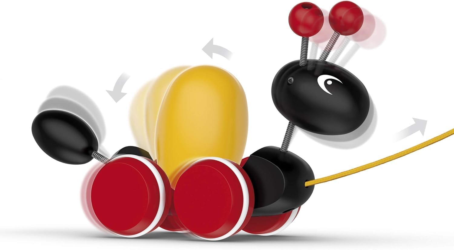 - Wenn man an der Schnur zieht, dreht sich das Ei auf dem Rücken herum.