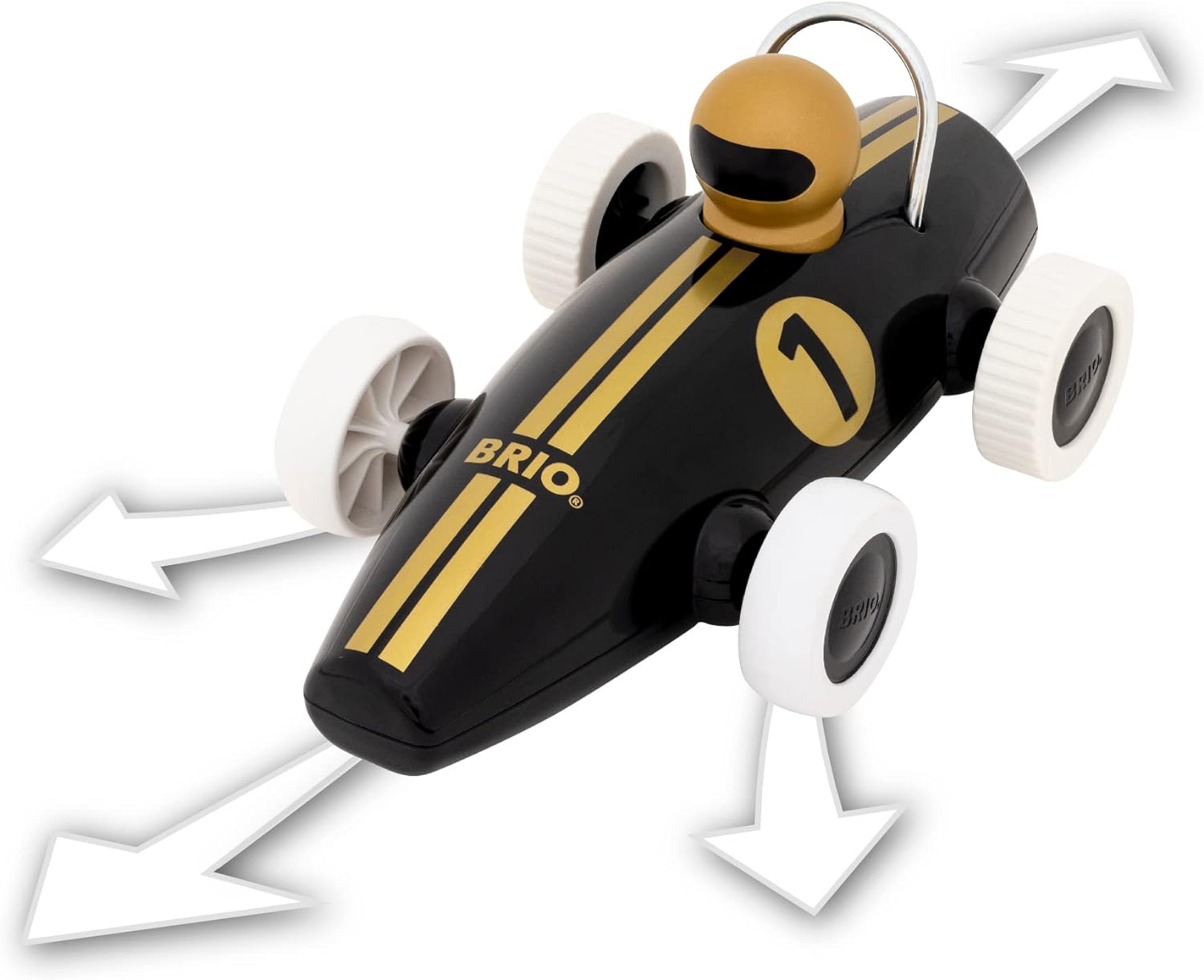 • Brumm, brumm! Mit seinem coolen schwarzen Fahrwerk und seinem windschnittigen Aussehen bietet der BRIO Rennwagen mit Fernsteuerung den Kindern viele Stunden rasanten Rennfahrspass