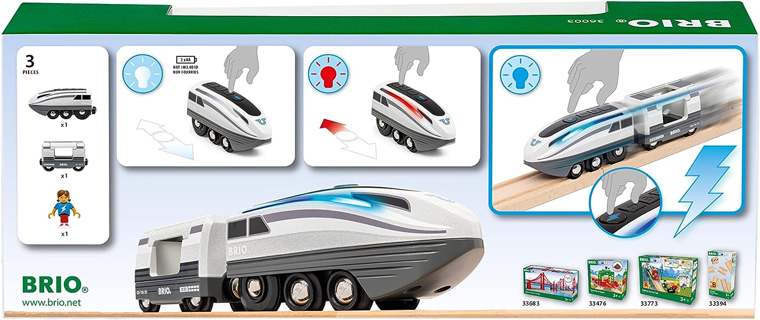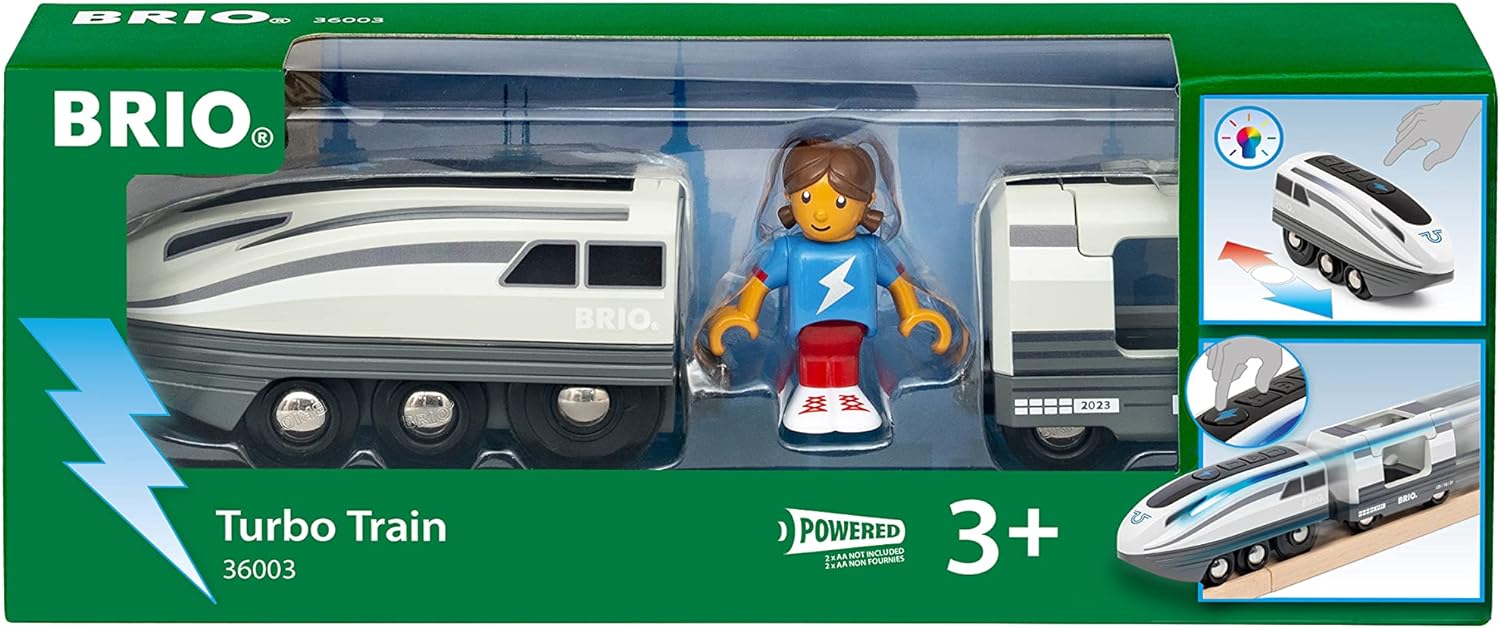- Der 36003 Turbo-Zug enthält drei Teile: 1 x Turbo-Lok, 1 x Passagierwaggon, 1 x Passagierfigur