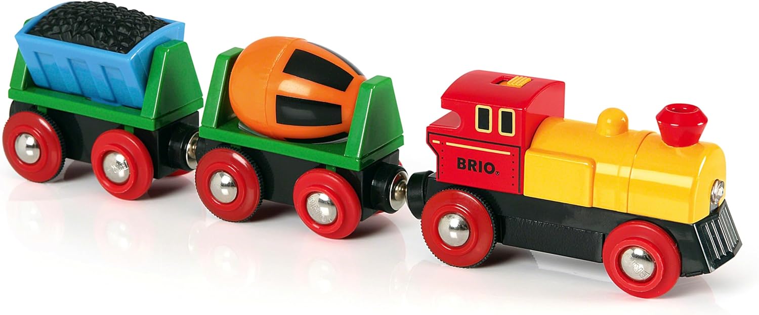 - Dieses batteriebetriebene Bahnset bereitet extra Spass mit einem beweglichen Kohlewaggon und einem rotierenden Zementmischer, sowie Scheinwerfern, die an der Lok auf dem Motor aufleuchten
