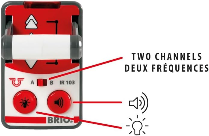 • 2 Züge gleichzeitig bedienen, Rückwärts- und Vorwärtsfahren in mehreren Geschwindigkeitsstufen sowie Licht- und Soundeffekte auslösen: Bequeme Steuerung der Eisenbahn dank IR Fernbedienung!