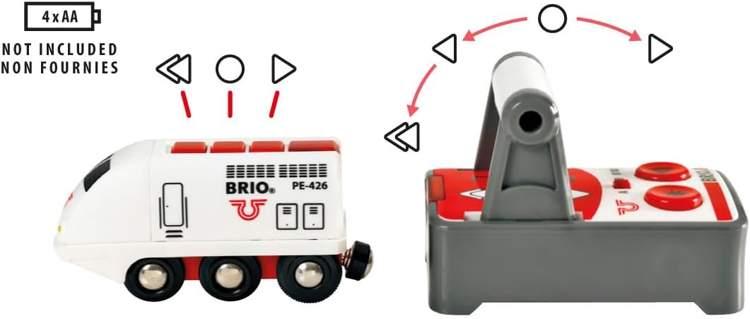 • Lieferumfang: 1 x BRIO ferngesteuerter Reisezug 4-tlg. / Zubehör für die Holzeisenbahn BRIO World - ideal als Geschenk zum Geburtstag & zu Weihnachten / AA-Batterien notwendig (nicht enthalten)