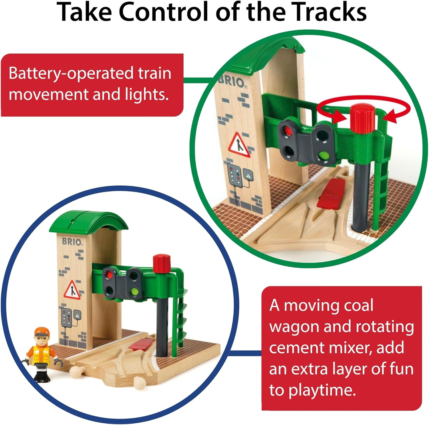 - Dreh am roten Knopf, um die Weiche einzustellen, damit die Züge in Windeseile ihr Ziel erreichen.