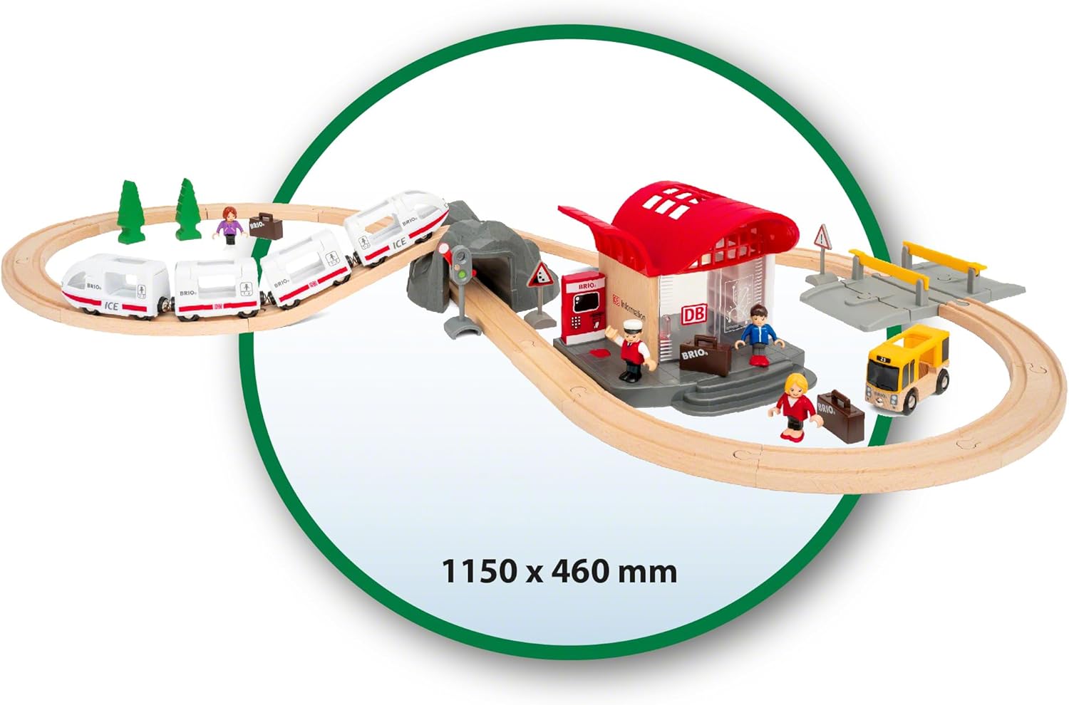 - Erstes offizielles Deutsche Bahn-Spielset von BRIO mit grossem ICE, Bahnhof mit Ticket-Automat und DB Info-Schalter, Bahnübergang, Bus und tollem Zubehör
