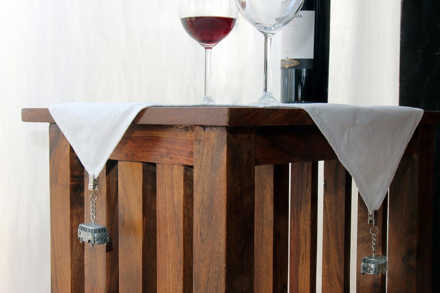 - PRAKTISCH: auf dem Dach jedes Bullis sind durch kleine Ketten die Klemmen zum leichten Befestigen der Tischdecke angebracht. Die kultigen Bulli-Klemmen sind ein trendiges Accessoire und komplettieren jedes Campingoutfit.