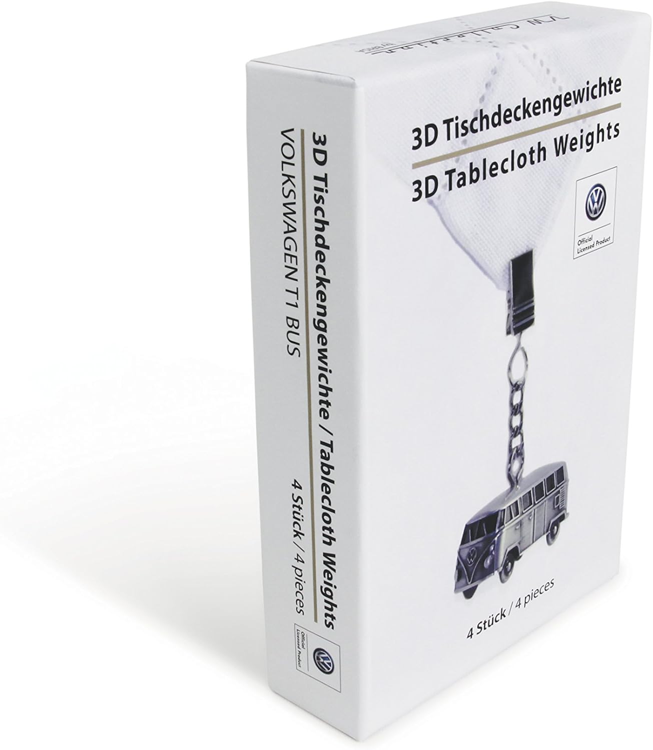 - ANTIK-Silber-OPTIK: praktische Tischdeckengewichte im 4er-Set im 3D VW Bulli Format. Lieferung erfolgt in einem schönen Geschenkkarton. Masse je Bulli-Gewicht: 5 x 8 x 2,3 cm.