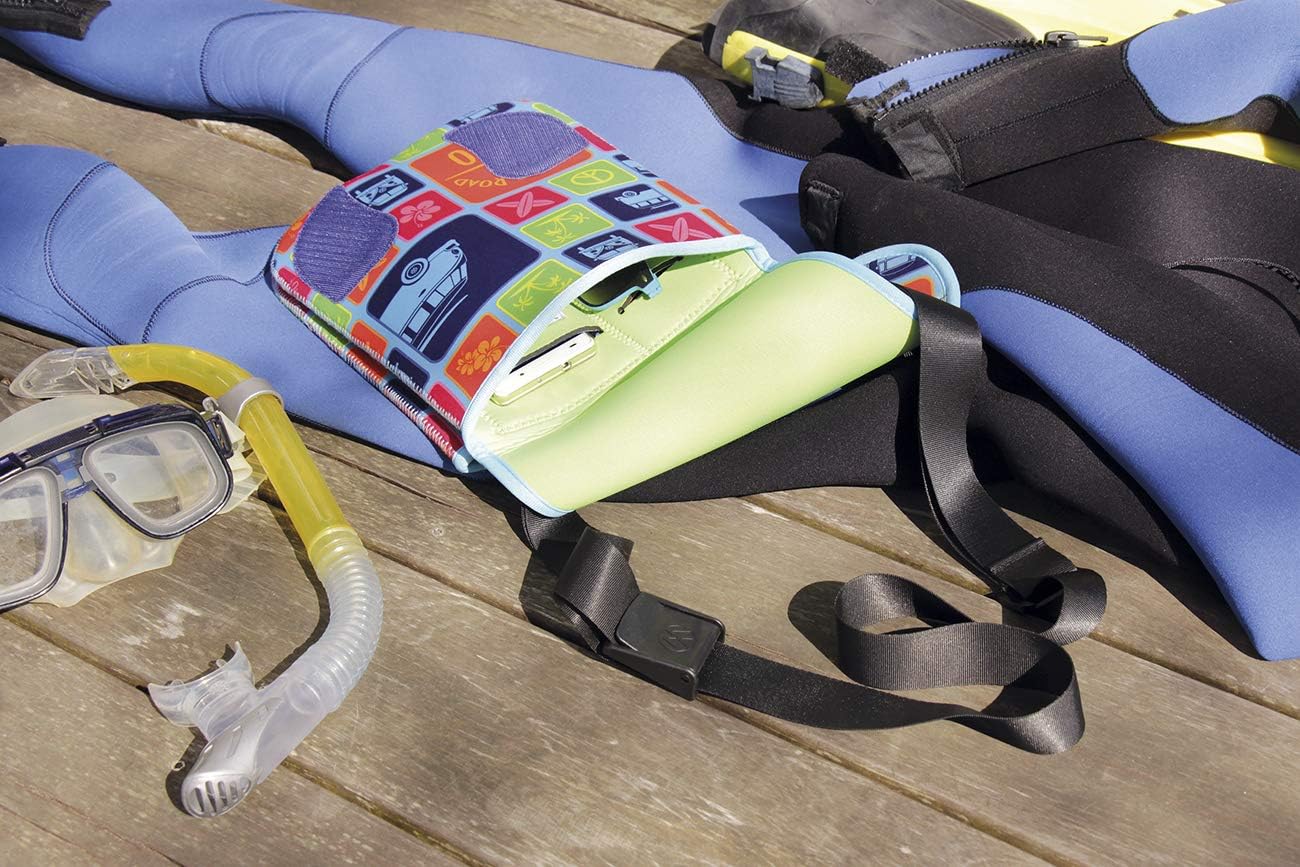 PRODUKTBESCHREIBUNGEN Die kleine Umhängetasche im Hochformat aus weichem Material mit coolem VW Bus Allover-Print im Surfer Style ist in ihrem handlichen Format der perfekte Begleiter. Er ist praktisch für Büro, Uni oder Stadtausflüge und sorgt für einen fantastischen Hingucker! Das einzigartige und durchdachte Volkswagen Design des Retro-Klassikers T1 Bus garantiert Ihnen viel Freude beim Tragen. Mit seinem witzigen VW Bus/Campervan Look und verschiedenen Farben ist er perfekt für alle Trendsetter und VW Nostalgiker. Als grösster Volkswagen Lizenznehmer nimmt BRISA die bestmögliche Qualität seiner Produkte sehr ernst. DESIGN | GESCHENKIDEE | WEITERE EIGENSCHAFTEN: Die stylische Volkswagen Tasche ist mit kleinen Bildern und Textmotiven des VW T1 Bus gestaltet. Es verfügt über zwei separate Fächer und ist für Laptops bis maximal 10 Zoll (ca. 25 cm) geeignet. Ein Fach schliesst mit einem Reissverschluss, während das andere über einen überlappenden Klettverschluss verfügt. Zusätzliche kleine Innentaschen bieten zahlreiche Aufbewahrungsmöglichkeiten für Handy, Geldbörse oder Notizblock. Die Tasche wird mit einem breiteren Schultergurt mit verstellbarer Länge für bequemes Tragen geliefert. Ein besonderes Extra sind die VW T1 Bus Silhouetten als Zipper zieht an den Reissverschlüssen. Eine tolle Geschenkidee für alle VW Fans! MATERIAL | TECHNISCHE DATEN Die VW T1 Bus Umhängetasche von BRISA überzeugt durch ihre hervorragende Verarbeitung. Die bequeme Passform und der geräumige Innenraum bieten viel Stauraum. Die Tasche besteht aus robustem Neopren (80% Gummi, 20% Polyester), wodurch sie langlebig und widerstandsfähig ist. Das verschleissfeste Material ist leicht zu tragen. Unser Ziel ist es, Produkte zu entwerfen, die Funktionalität, Emotion, Design und Kreativität verbinden. Qualitätsstandards sind für uns selbstverständlich und dienen seit der Einführung im Jahr 2013 als Grundlage für unseren Erfolg. Die Masse dieser trendigen Tasche betragen 23 x 28 x 6 cm (9,1 x 11 x 2,4 Zoll).