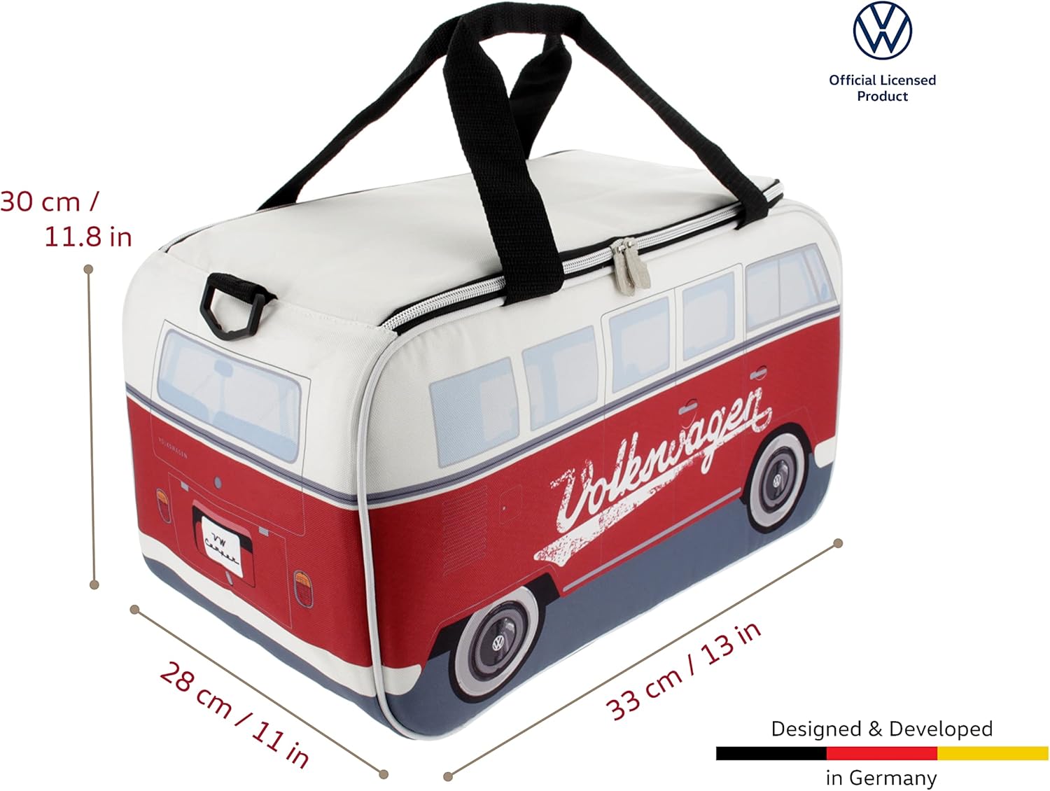 - ROT & WEISS: diese kultige Kühltasche ist ganz in rot und weiss gehalten und mit dem weissen Schriftzug "Volkswagen" versehen. Ein cooles Detail sind die Zipper Puller in Bus Form. Die Tasche misst 45 x 24 x 25 cm und fasst bis zu 25 Liter.