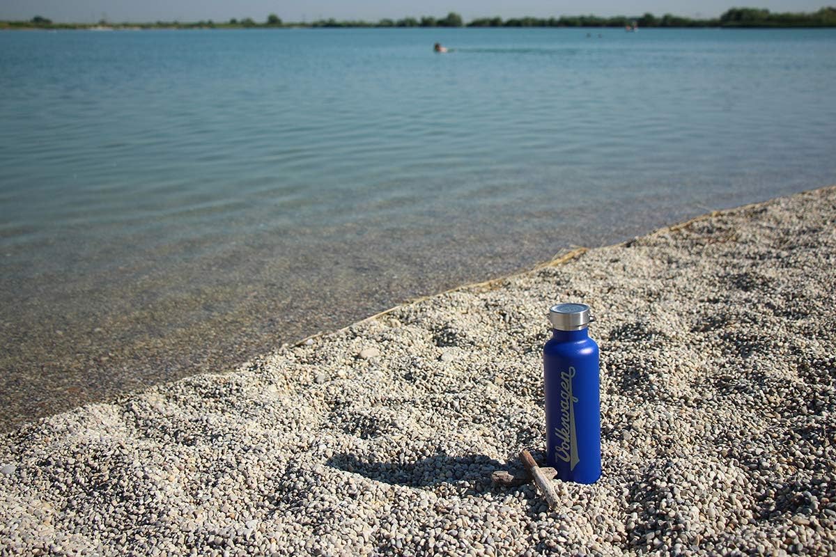 - METALLISCH BLAU: diese Thermo-Flasche aus hochwertigem Edelstahl ist versehen mit Volkswagen Schriftzug und VW Logo, herausgelasert aus einer robusten blauen Pulverbeschichtung. Die Trinkflasche hat die Höhe 25,5 cm, Ø 7,8 cm und Füllmenge 735 ml.