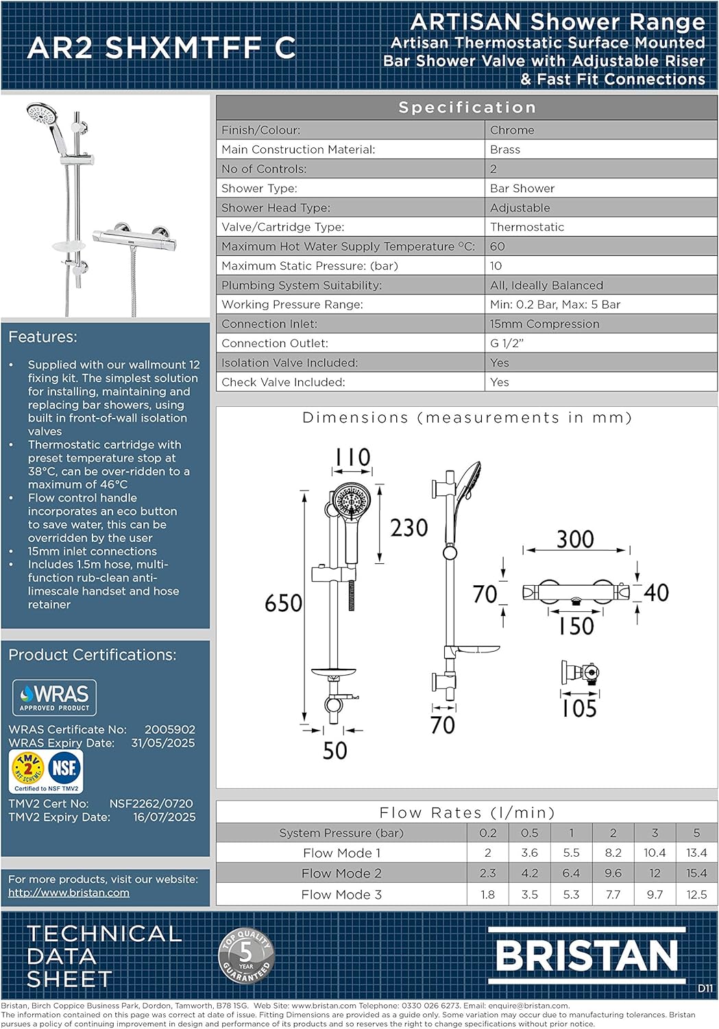 - Lieferung mit Wand-Montage-Kit für einfache Installation, TMV2-Thermostat mit Warmwasserspeicher und einem hohen Mass an thermostatischem Schutz.