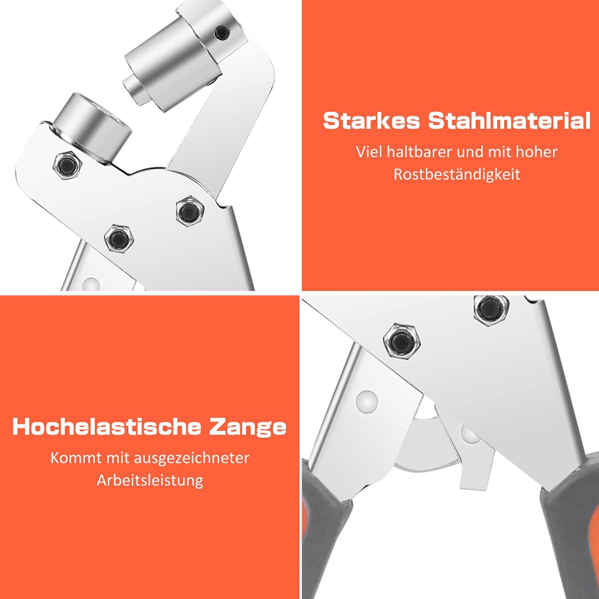 • 【Premium Material】 --- ösen set Nimmt robustes Stahlmaterial an, Verstärkte Nietenkonstruktion und glattes Zweipunkt-Hebelpress-Design ermöglichen effektives Ösenlochstanzen