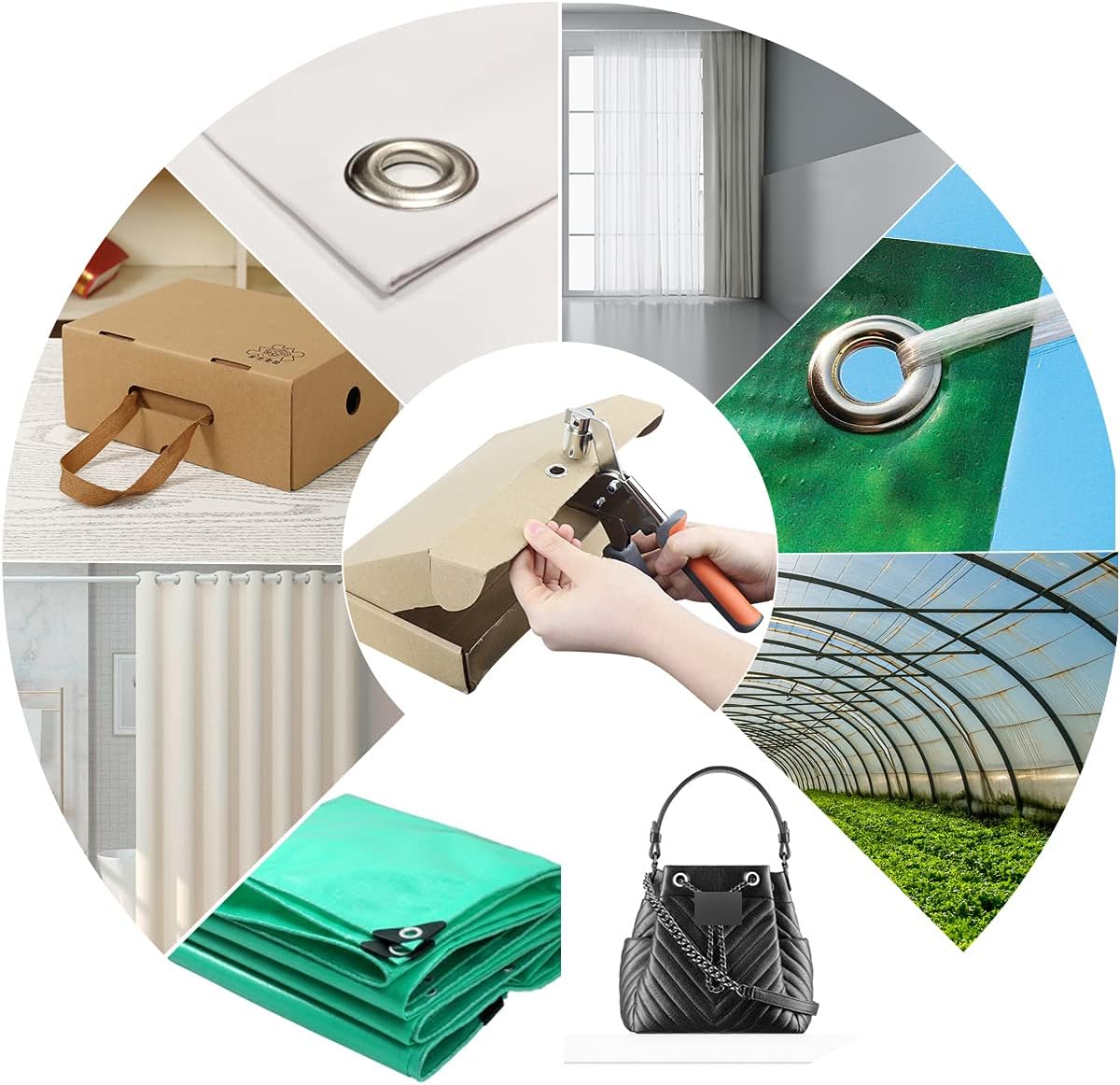 • 【Verschiedene Anwendungen】 --- Dieser Ösenstanzer wird häufig für Leder, Stoff, Planen, Vorhänge, PVC, Markisen, Leinwand, Poster usw. Dies ösenzange 10mm ist perfekt für Reparatur- und Dekorationsprojekte im Innen- oder Aussenbereich