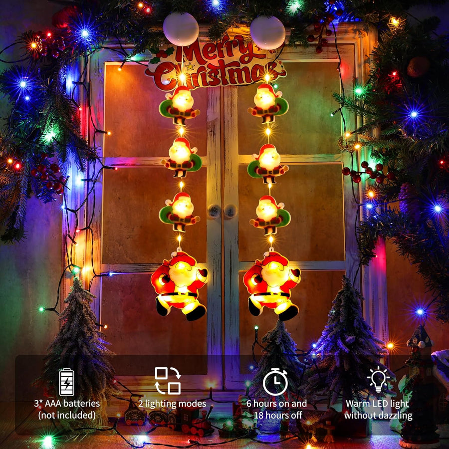 - đ ăWeihnachtsdeko BeleuchtungăDie HĂ€ngende Fenster Lichter besteht aus 4 niedlichen Weihnachtsmann Formen und ist mit 13 hellen LED Lichtern ausgestattet. Sein neuartiges Design und seine einzigartige Form machen es zu einer perfekten Festival