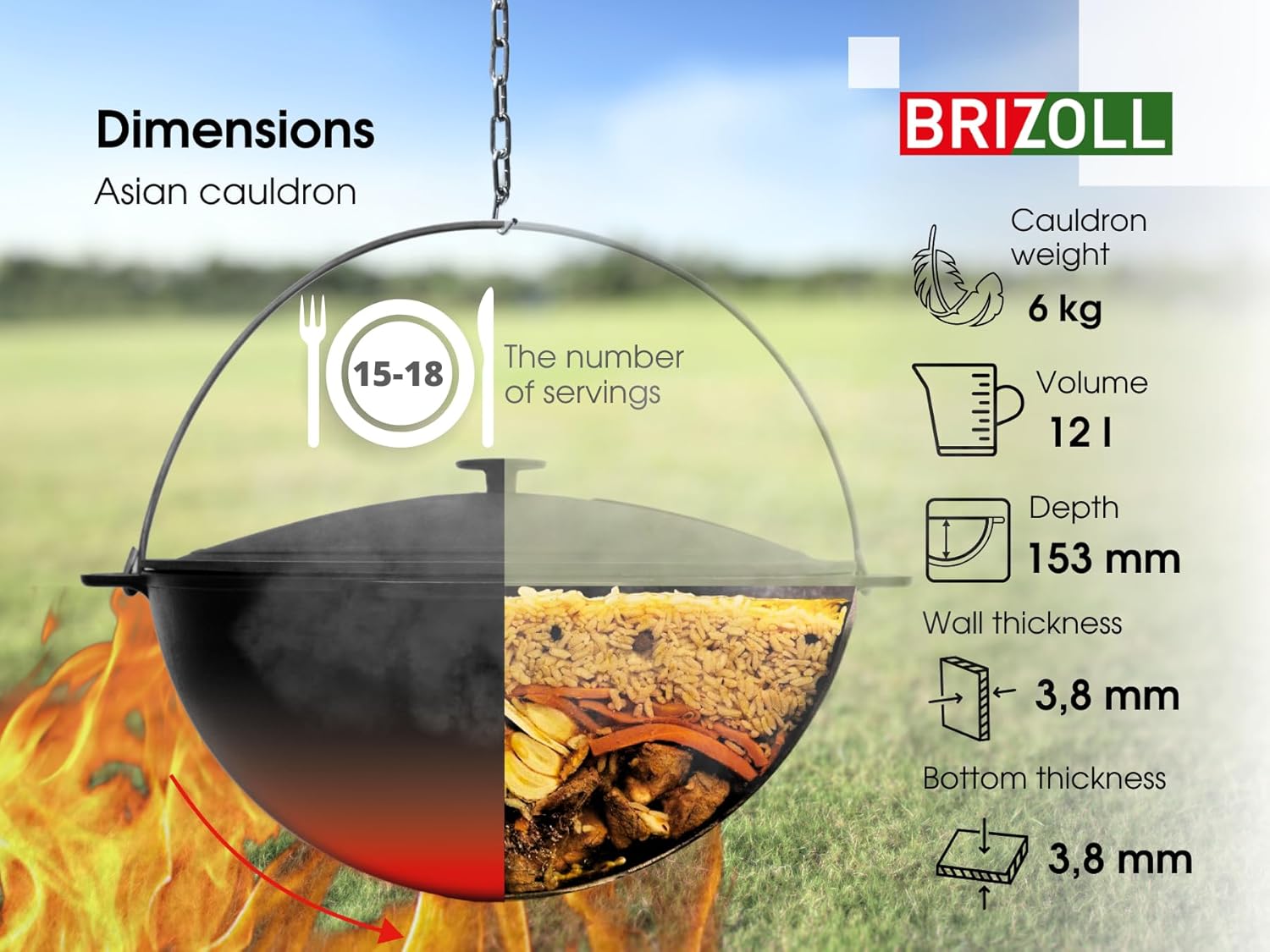 - Durch die hohe Wärmespeicherung von Gusseisen bleibt der Wok lange heiss und hält die Speisen auch beim Servieren warm.