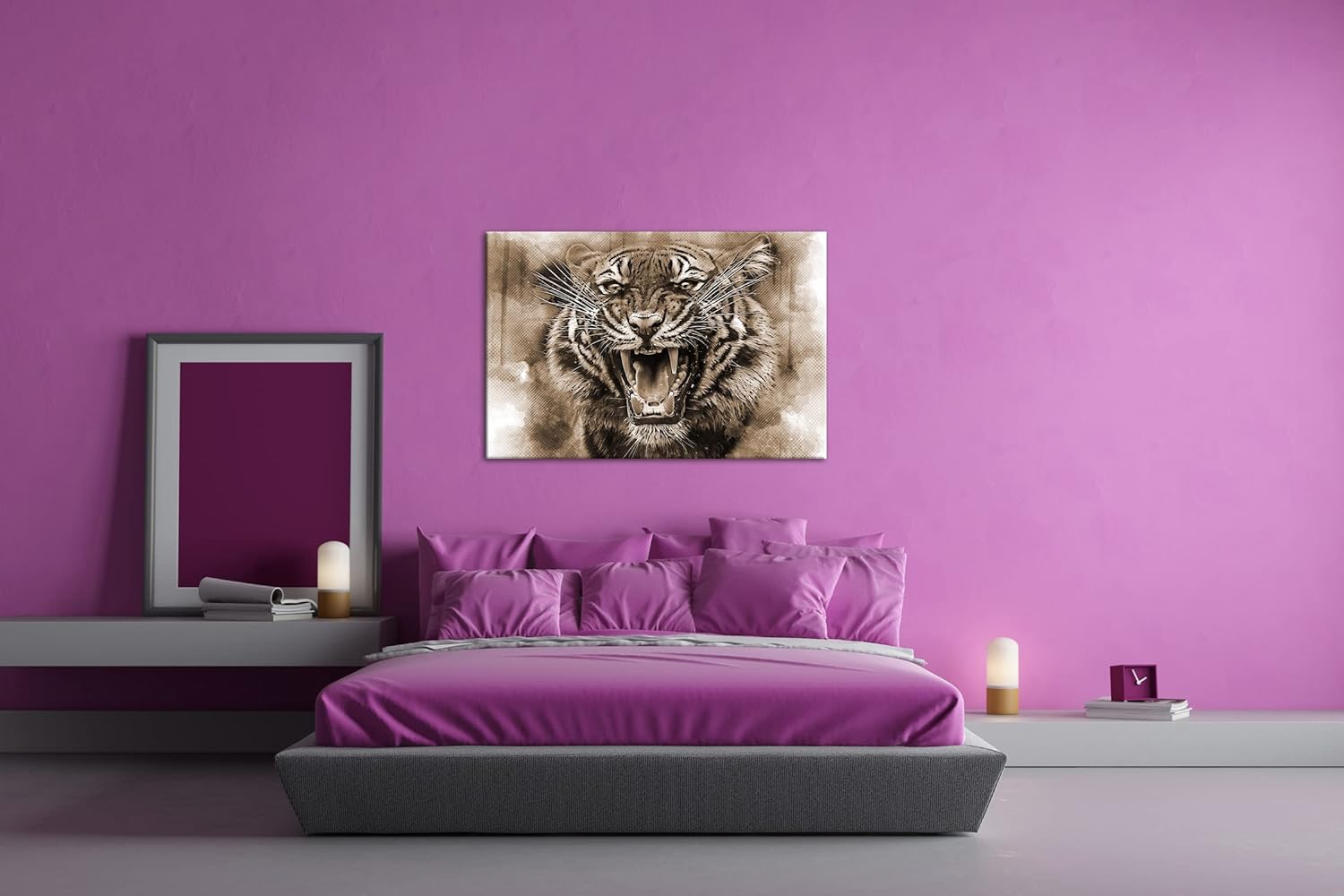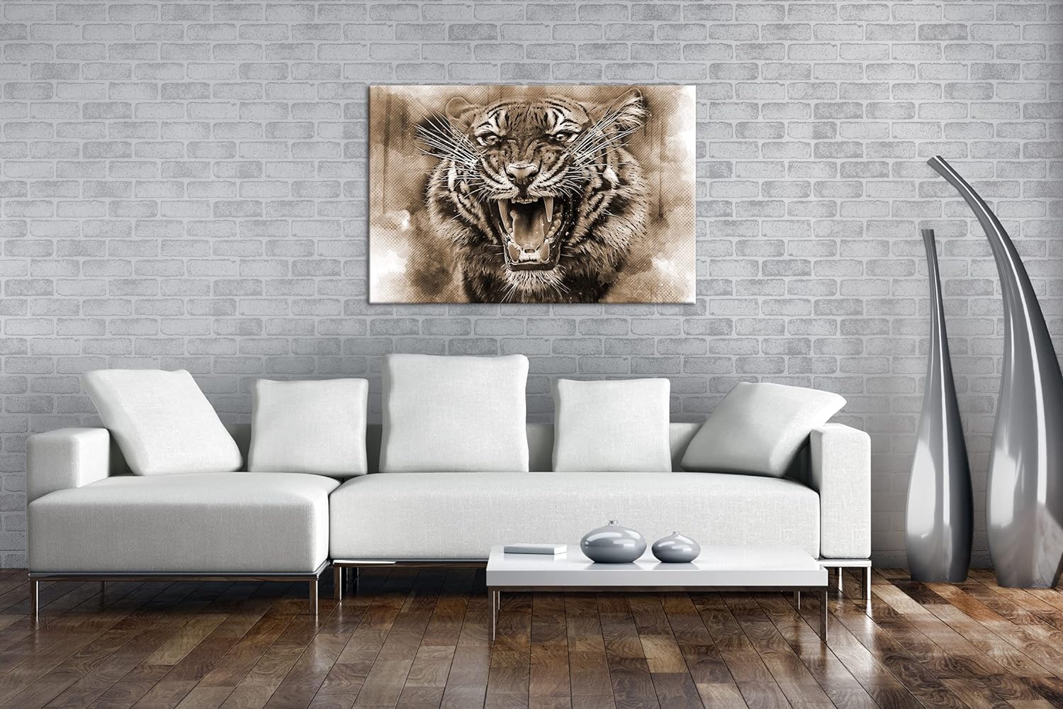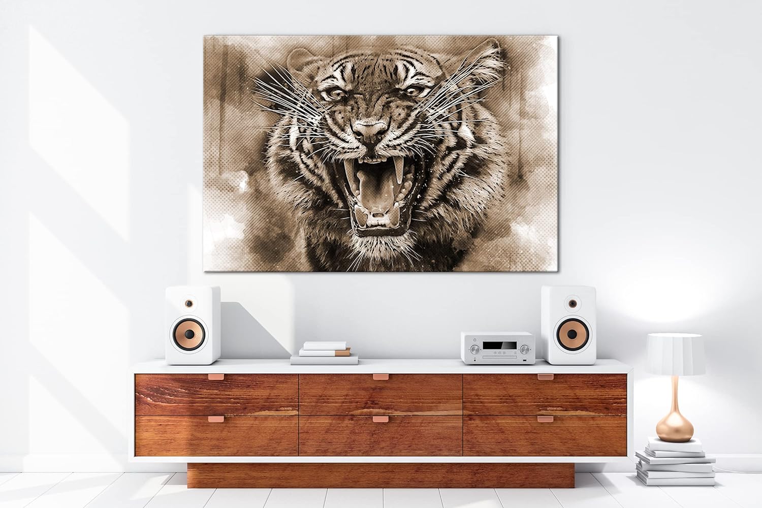 deyoli brüllender Löwe Format: 80x60 Effekt: Sepia als Leinwandbild, Motiv fertig gerahmt auf Echtho