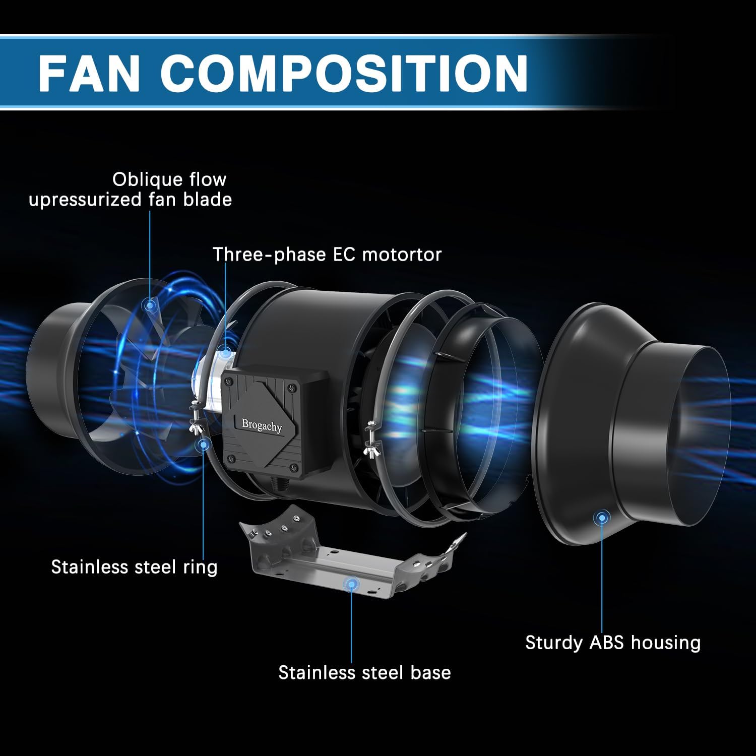 - 【Dreiphasiger EC-Motor】 Energieeinsparung ist sehr gut: Dreiphasen-EC-Motor mit gemischtem Durchfluss. Dadurch kann der eingebaute Lüfter leiser laufen und niedrige Drehzahlen erreichen, ohne Lärm oder Hitze zu erzeugen. Auch die Energieeffizienz