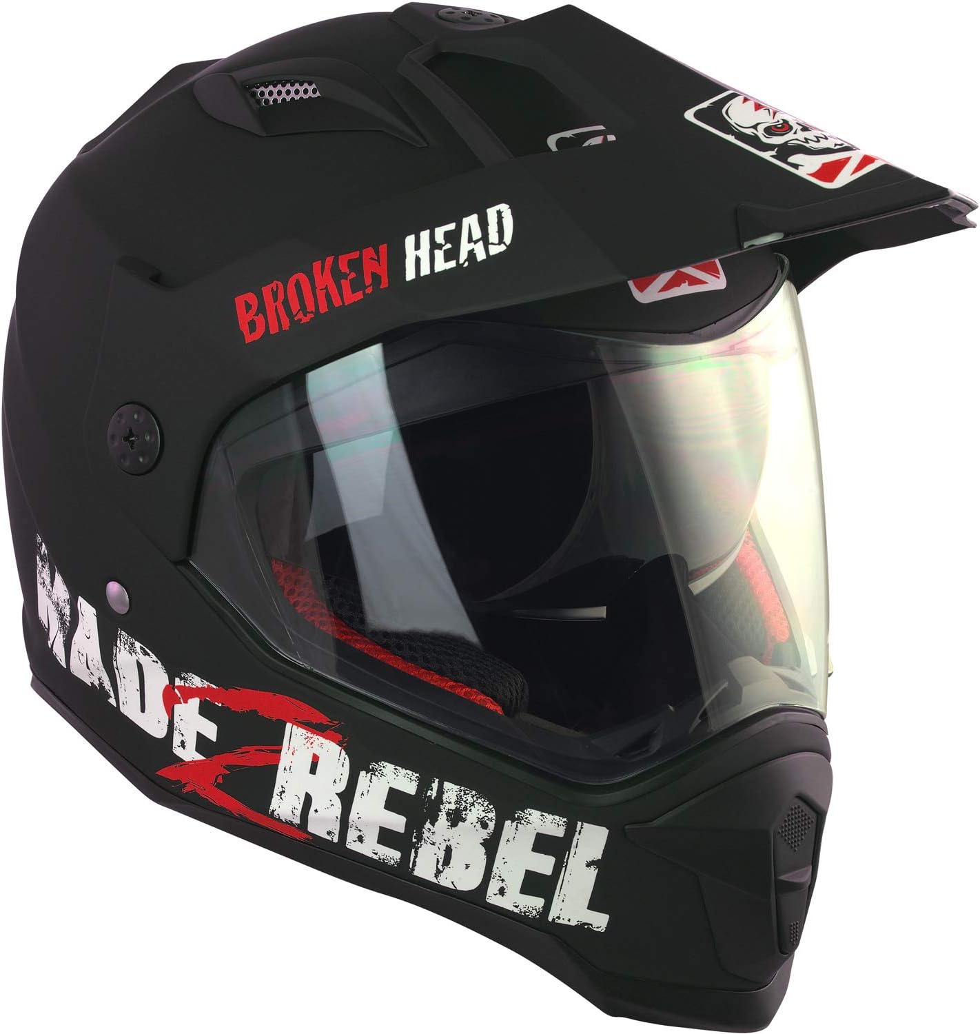 - CROSS-HELM: Wenn Du das Visier abbaust, kannst Du den Helm als Cross-Helm verwenden. Mit abgebautem Schirm erhältst Du einen Integral-Helm. Das Visier ist Pinlock-vorbereitet. Du kannst es bei Bedarf mit einer Pinlock-Scheibe nachrüsten