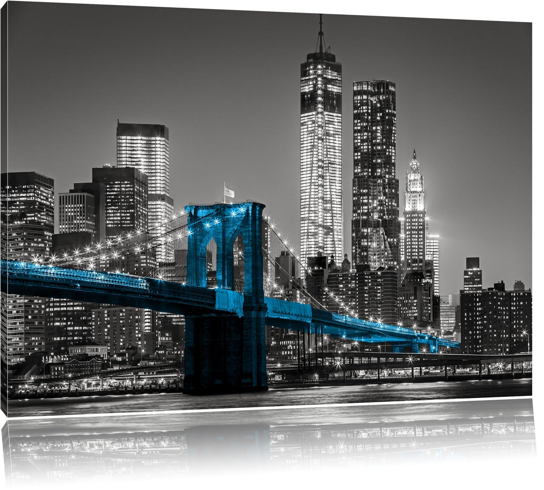 Brooklyn Bridge mit Wolkenkratzern bei Nacht schwarz/weiss Format: 100x70 auf Leinwand, XXL riesige