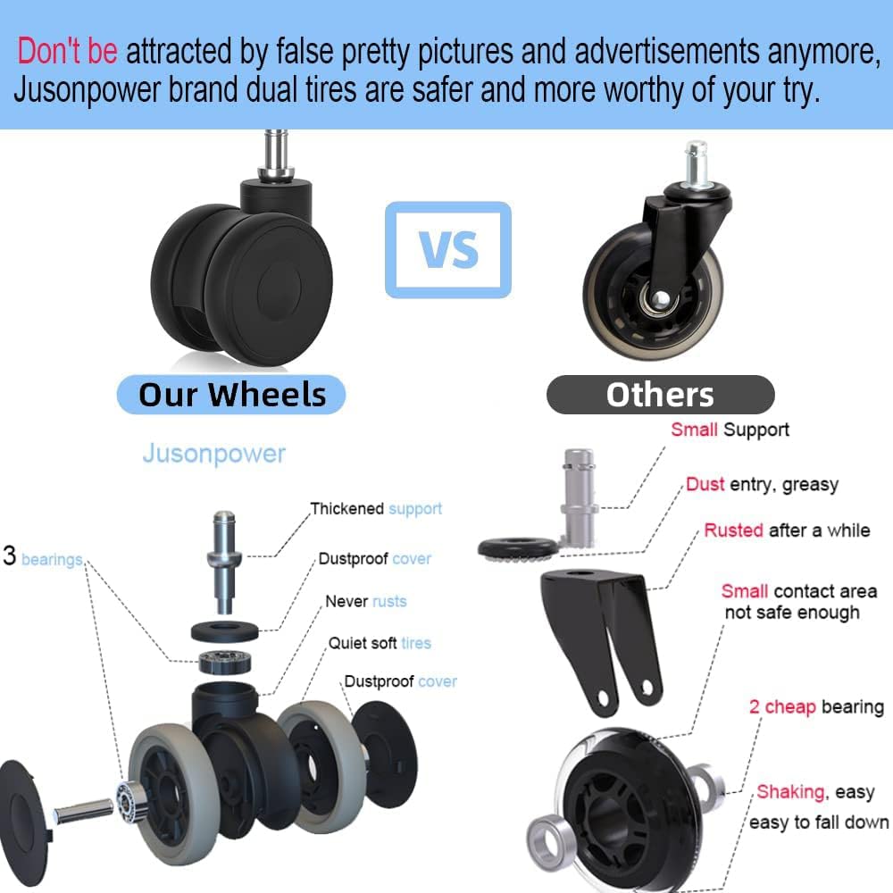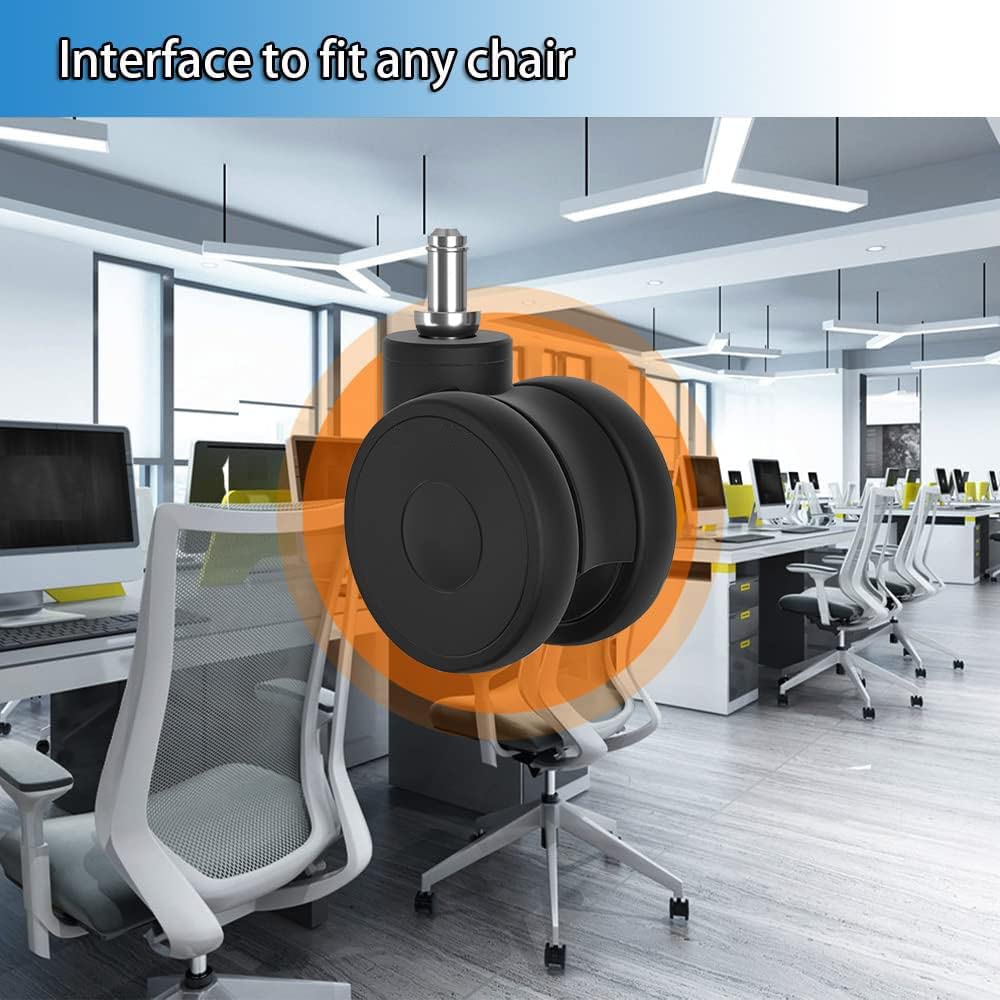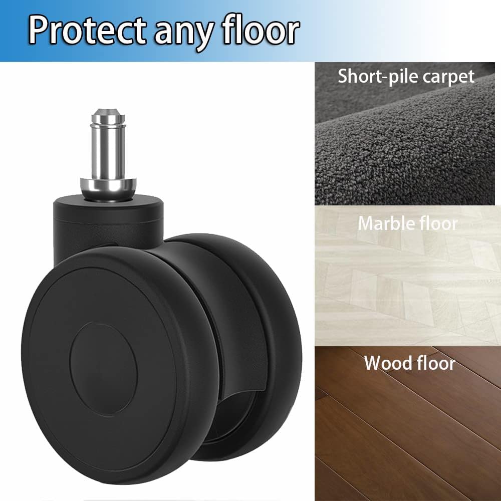 • FÜR ALLE ROLLSTÜHLE MIT 11MM STIFTEN: Passend für jeden Schreibtischstuhl, wenn dieser 11mm Rollen unterstützt (Achtung: IKEA benutzt 10mm Rollen, auch viele Topstar Bürostühle haben 10 mm Bohrung, also bitte vor dem Kauf nachmessen)