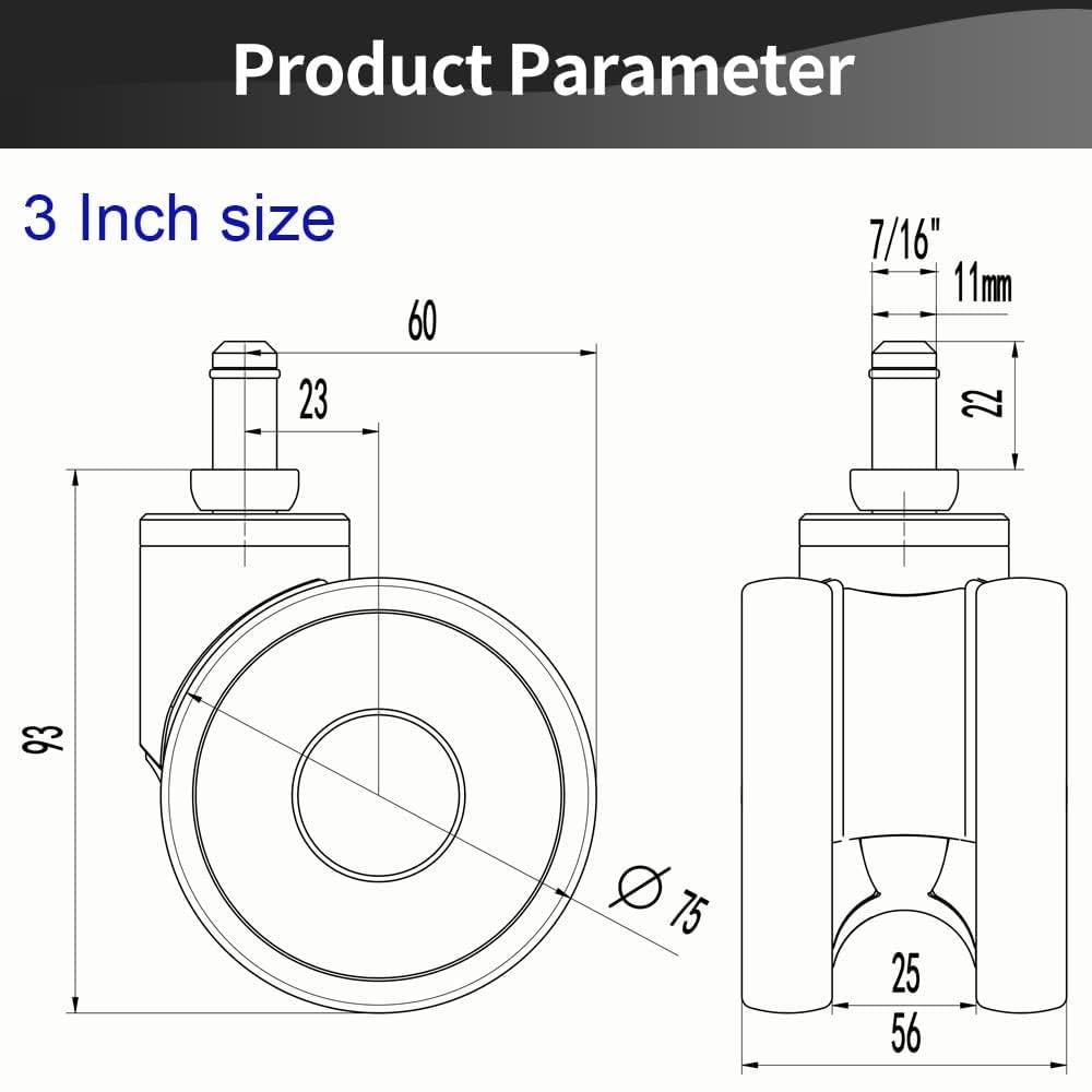 • ACHTUNG WICHTIG: Bitte vor dem Kauf die richtige Stiftgrösse bis auf Millimeter genau bestimmen! Das spart Ihnen Zeit und Nerven. Diese Rollen haben einen 11mm x 22mm Stift. (Sie passen nicht auf NitroConcepts Stühle)