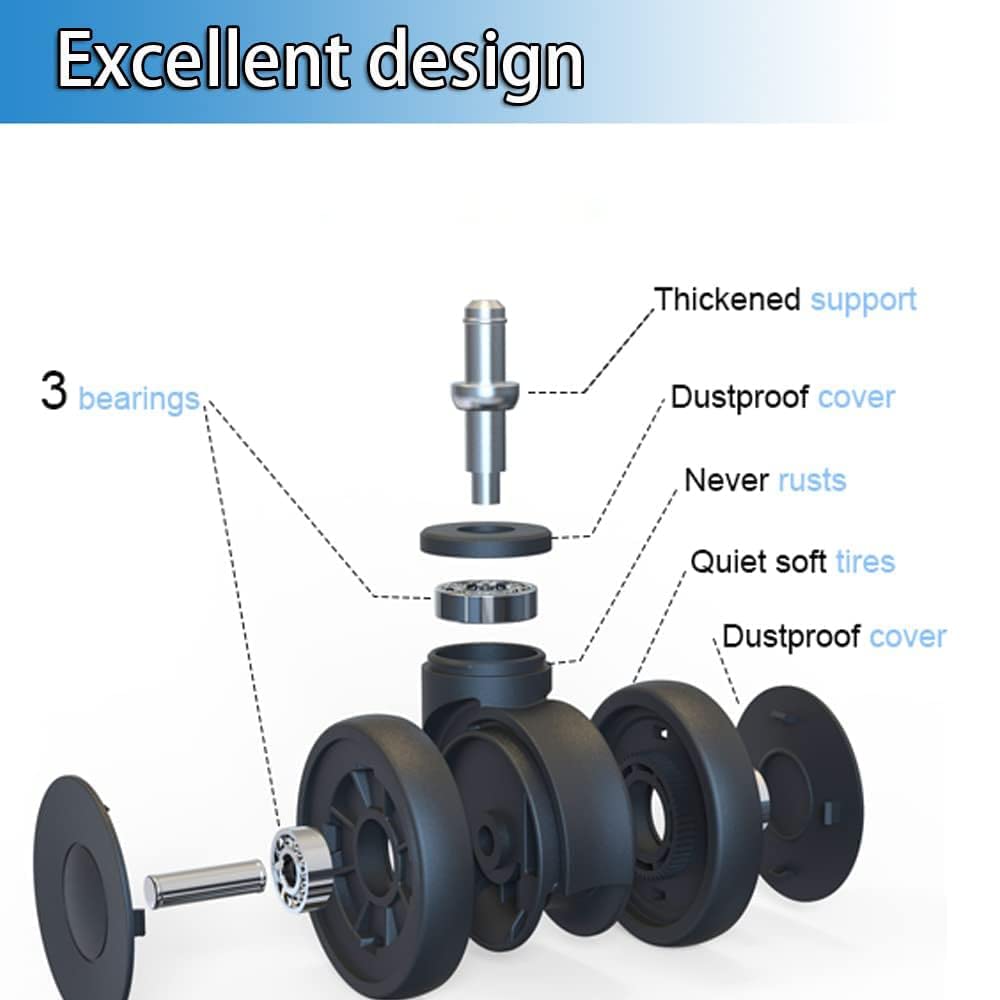 • DESIGN: Diese Rollen werden Ihren Bürostuhl aufwerten, weil sie ein einmaliges und sehr modernes Design haben. Die Rollen sind ungebremst.