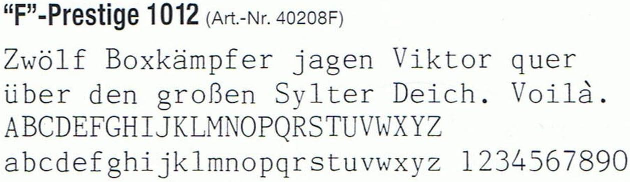 - Schriftart: "F"-Prestige 1012