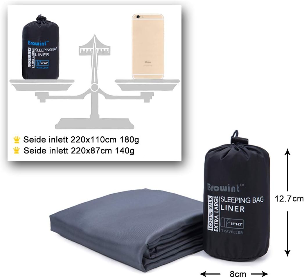 - Das echte Seidenfutter hält den Schlafsack sauber und ist der ideale Begleiter für Hotel, Hütte, Schlafwagen, Reise und Camping.