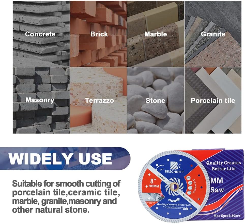 • ✔Breite Anwendungen – Allzweckklinge empfohlen zum Trockenschneiden von allgemeinen Baumaterialien wie Mauerziegel, Granit, Marmor, Beton, Stein und Terrazzo